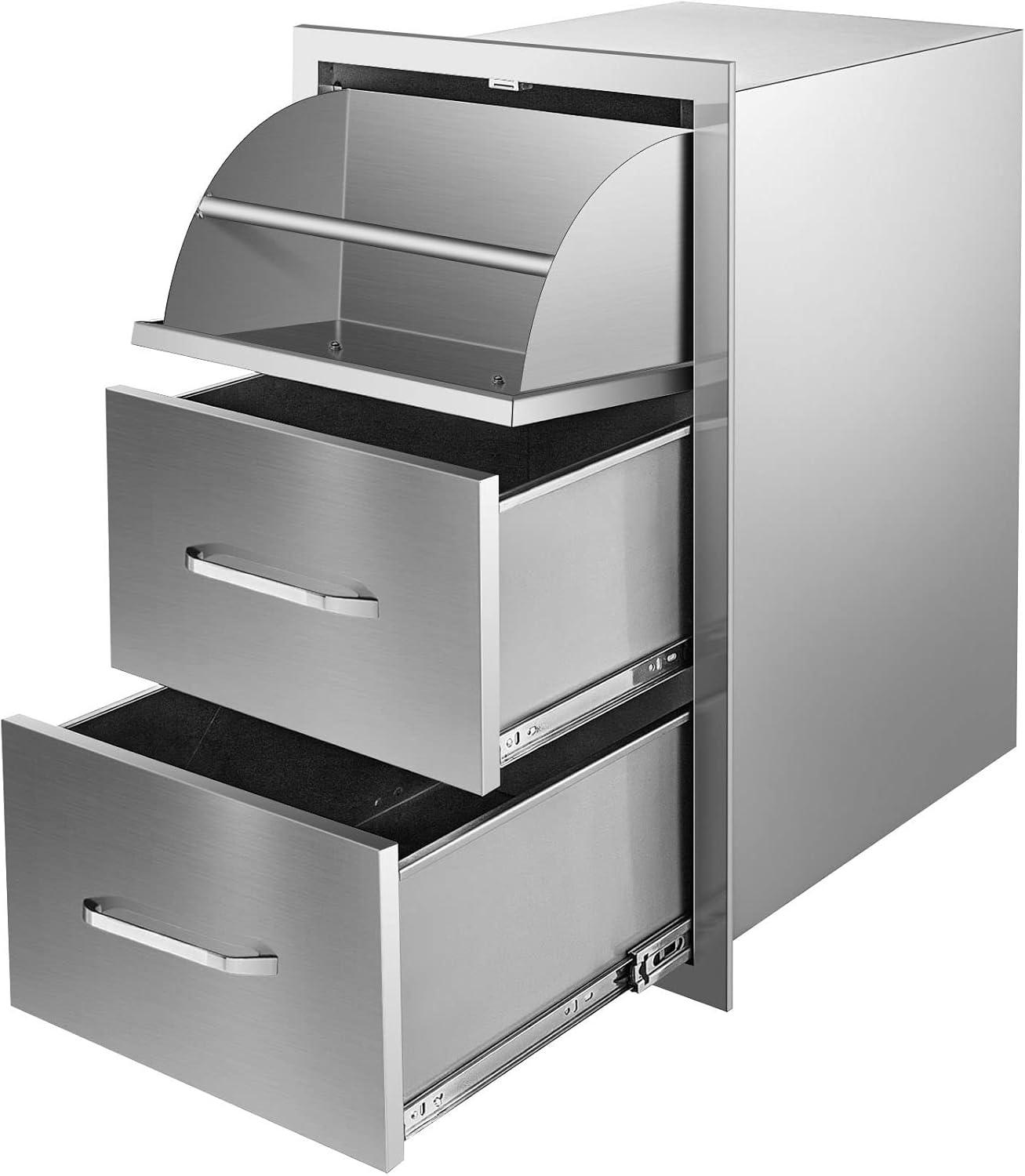 Premium outdoor kitchen drawers with double drawers and a paper towel holder, provide a large storage space to put kitchen accessories. Made of stainless steel to ensure durable and sturdy for long time use. With the fully enclosed box, it can effectively avoid the entry of many kinds of foreign objects. Perfect for the outdoor kitchen and BBQ island to use.