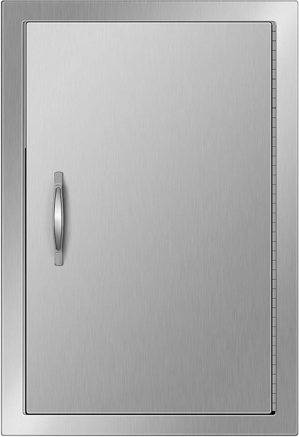 24×24-inch Outdoor Kitchen Doors The BBQ door is made of premium stainless steel, which makes the outdoor cabinets are more study and durable with improved anti-corrosion and anti-scratch performance, after exposing in all weather conditions for years. You can really see the attention and efforts we have put into these stainless steel BBQ doors, by looking at the smooth weld joints, the seamless corners improve sturdiness while lengthening the service life.
