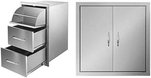 17W x 30H x 21D Inch Stainless Steel Outdoor Kitchen Double Access Drawers Combo with 24W x 24H Inch BBQ Access Doors(17W x 30H x 21D Inch)