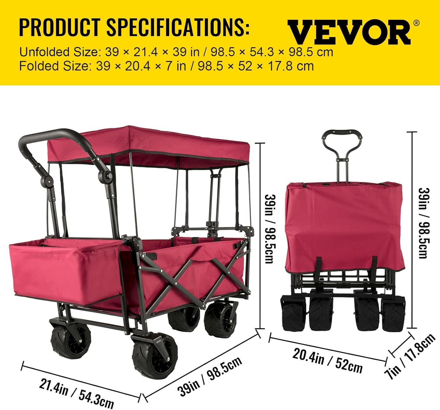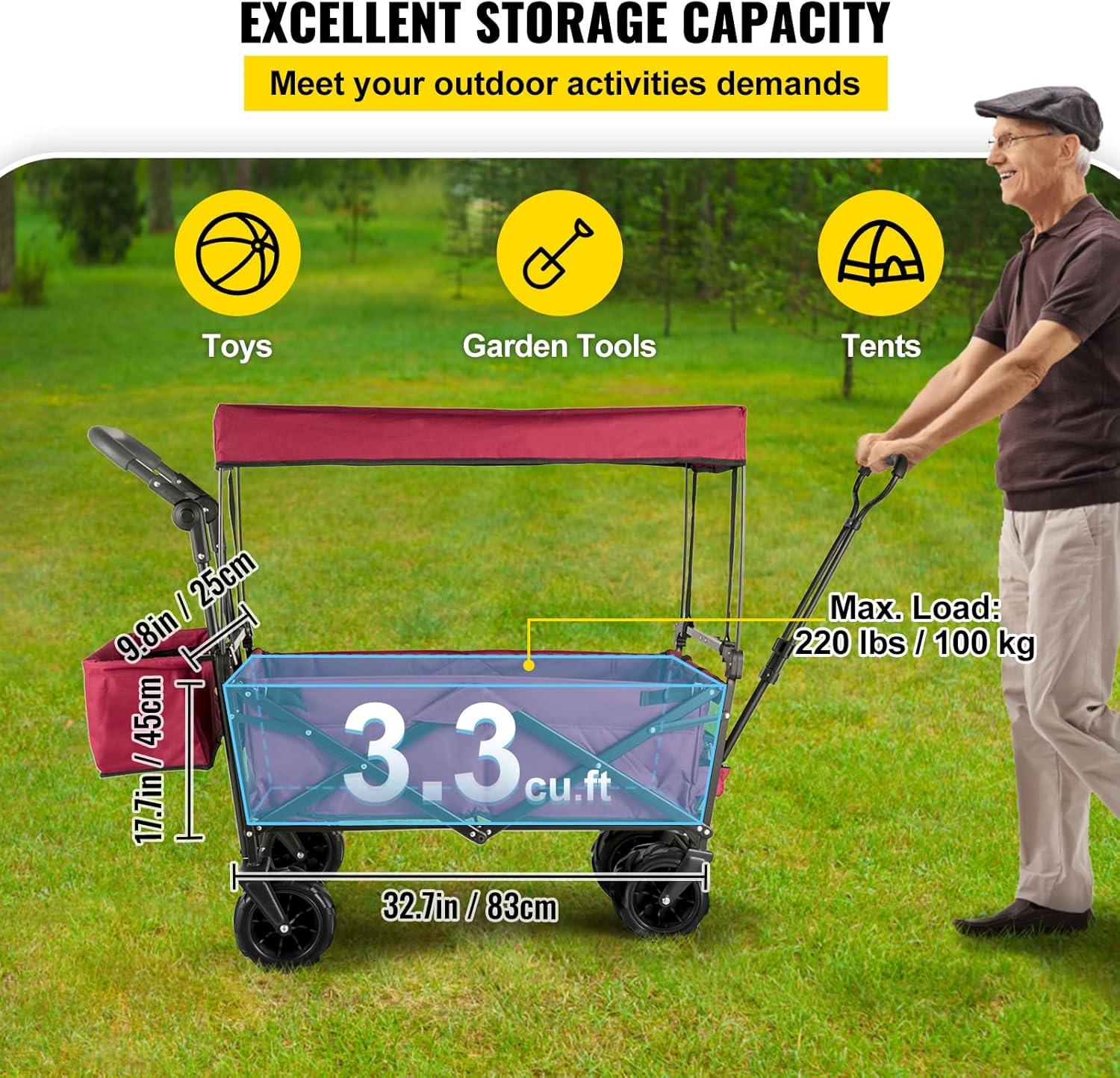 Easy to Fold/Unfold: No assembly required. It can become extremely compact in simple steps, allowing you to store it in the trunk of your car! With this wagon cart's help, you can get rid of backache from carrying too much stuff.