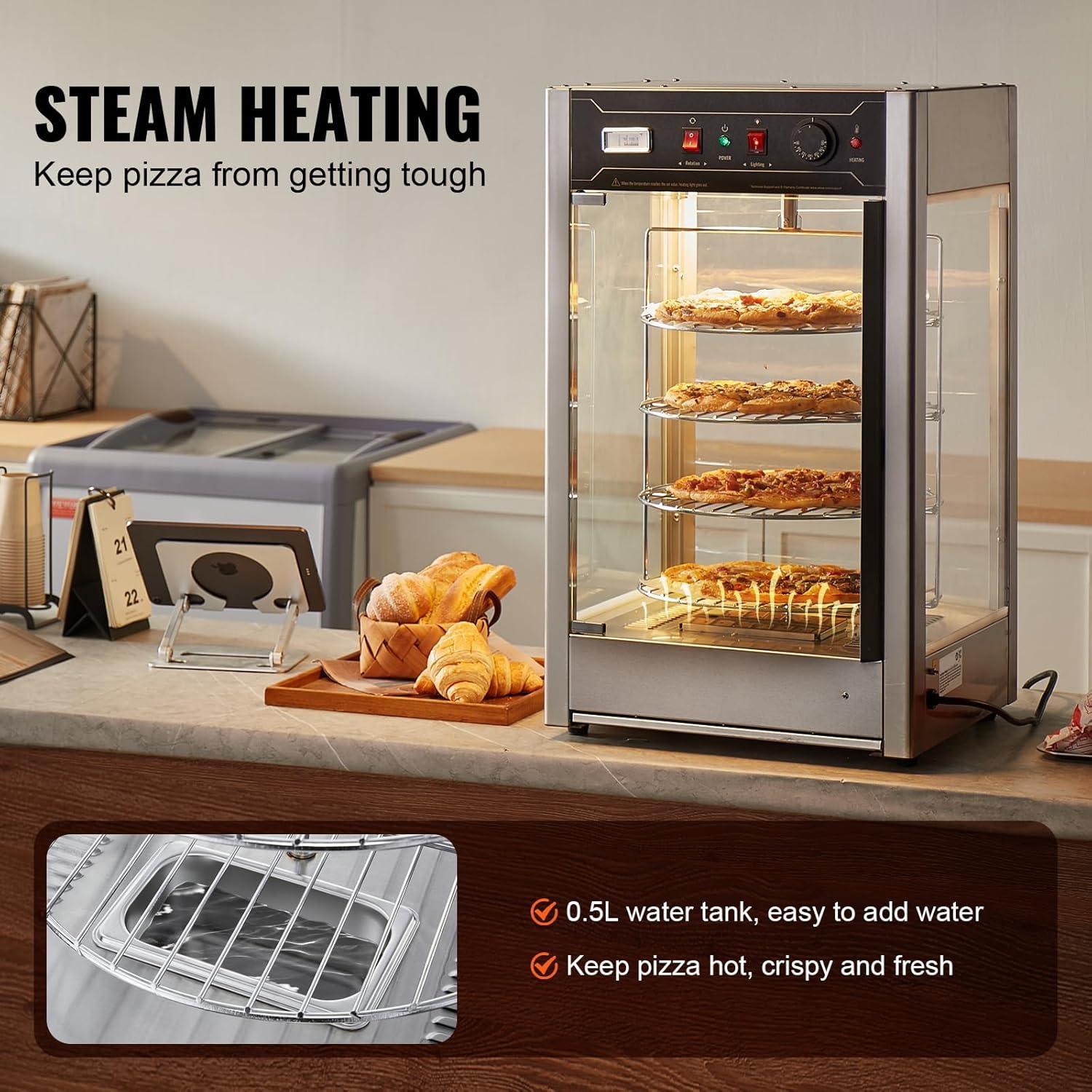 Efficient Heat Preservation: Featuring a 0;5L water tank, this warmer uses steam heat conduction to maintain moisture, preventing your food from drying out; It ensures your pizzas stay fresh and maintain the ideal texture, avoiding tough or cold results;