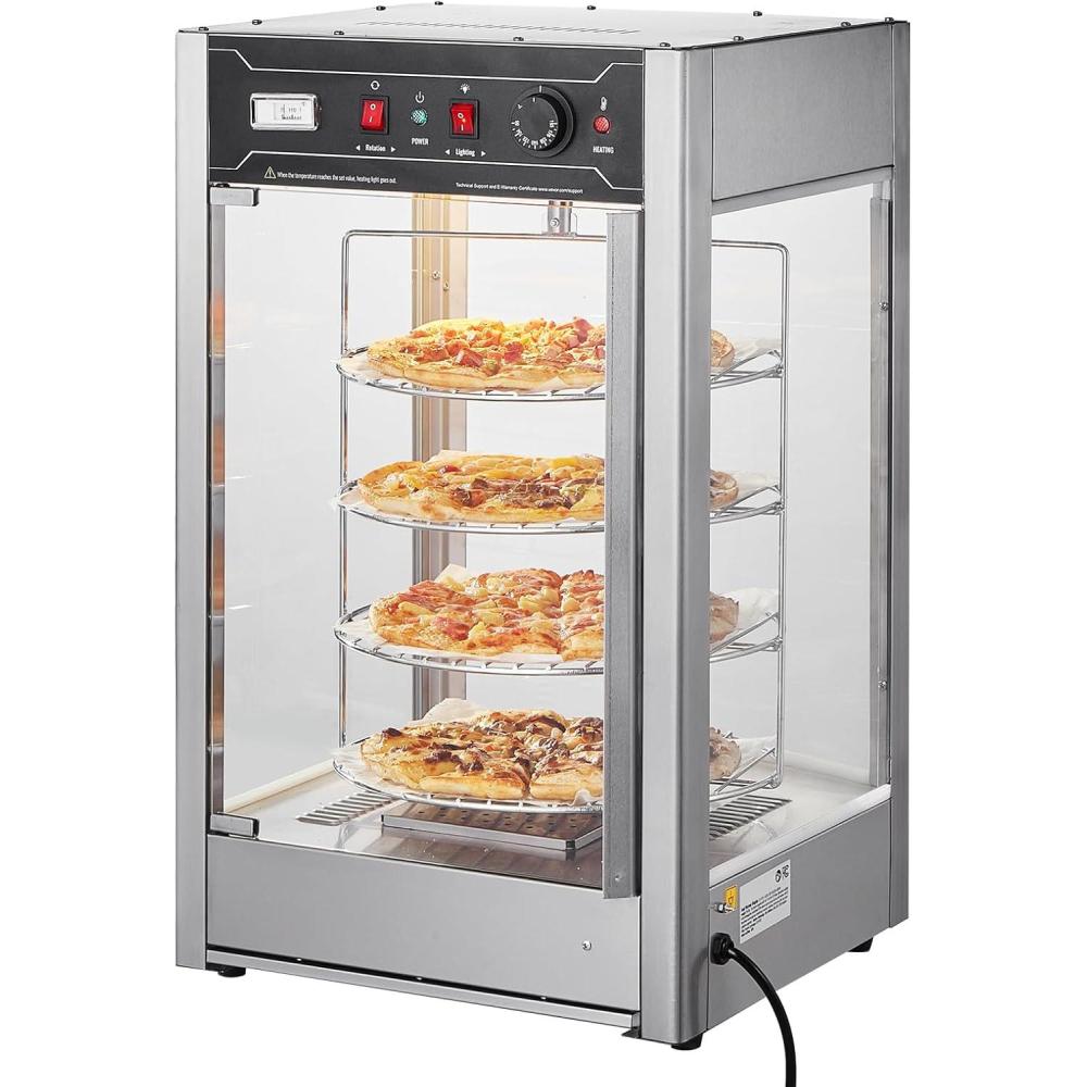 Circulating Rotation for Even Heating: The rotating display ensures consistent, uniform heating, providing a perfectly crispy texture with every serving; Combined with a 25W lighting system, it enhances both the warmth and the visual presentation of your food;