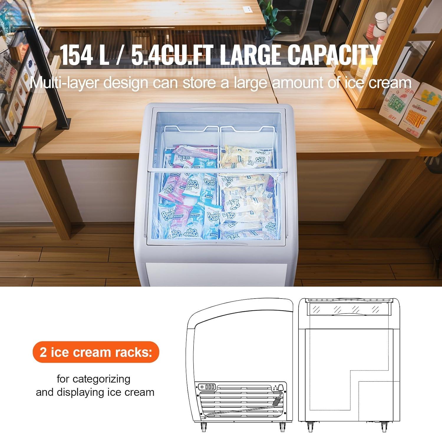 Ample Storage and Display Space: With a generous 154L (5.4 cu.ft) capacity, this ice cream display case features two top-mounted wire baskets for easy product showcasing. Additionally, the spacious bottom compartment offers extra storage for additional tubs, ensuring you always have your best-selling ice creams within reach.