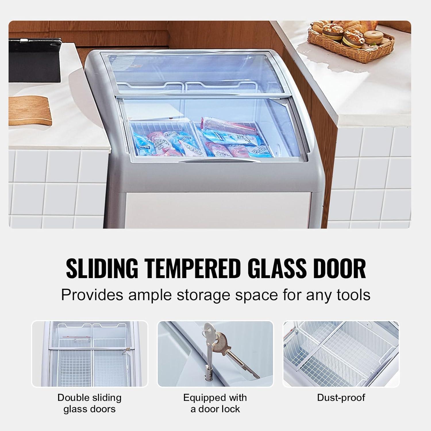 Convenient Sliding Glass Doors: For easy access, the freezer features sliding glass doors that open from either side. The doors are equipped with locks, ensuring security and keeping your ice cream safe, especially in high-traffic or unattended environments.