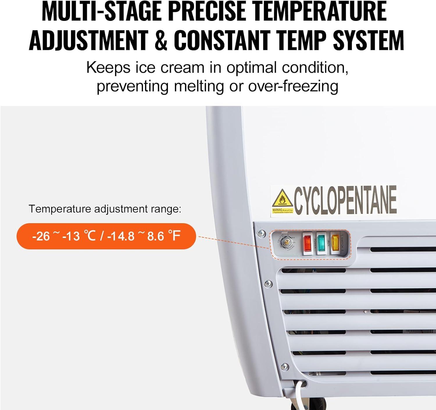 Customizable Temperature Control: This display freezer provides a versatile temperature range from -26°C to -13°C (-14.8°F to 8.6°F), giving you precise control over the freezing conditions. The adjustable thermostat ensures your ice cream stays perfectly frozen while helping save on energy consumption.