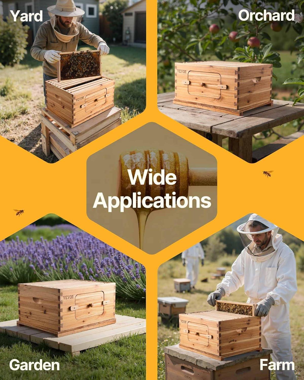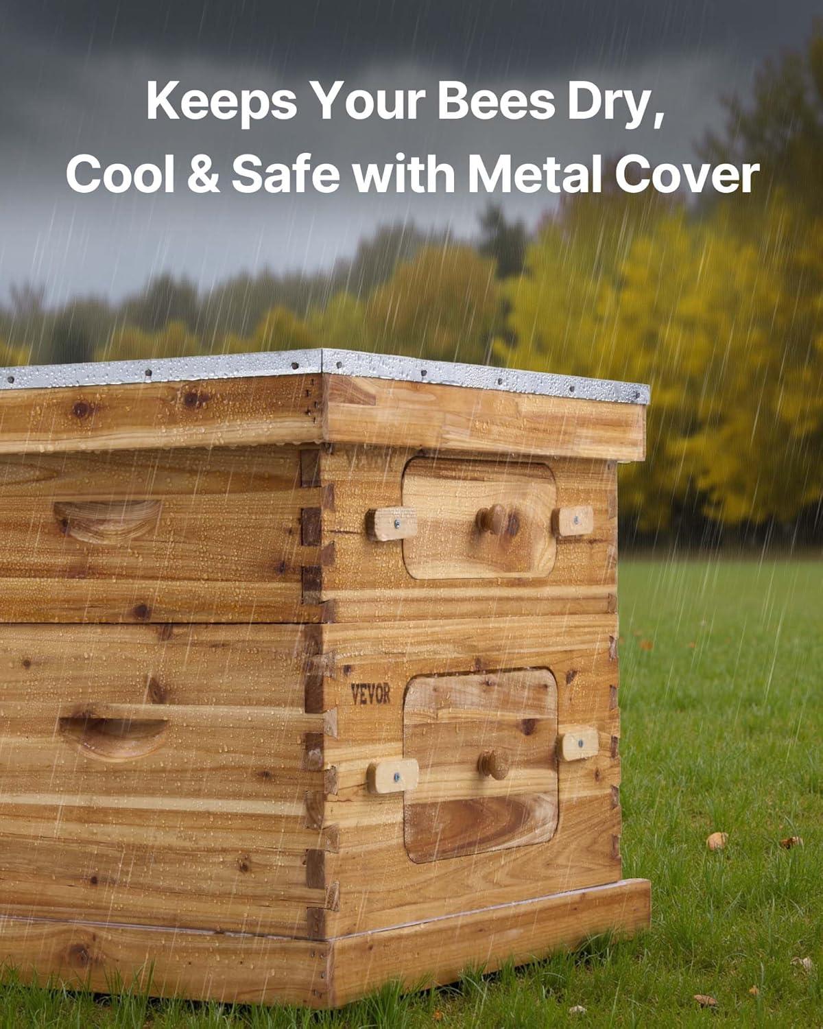 Sturdy and Durable: Crafted with high-quality fir wood measuring 0.74 inches thick, combined with precise dovetail joinery, creating a hive that is both sturdy and long-lasting. Designed for outdoor use, capable of withstanding harsh weather conditions, ensuring reliability for long-term use.