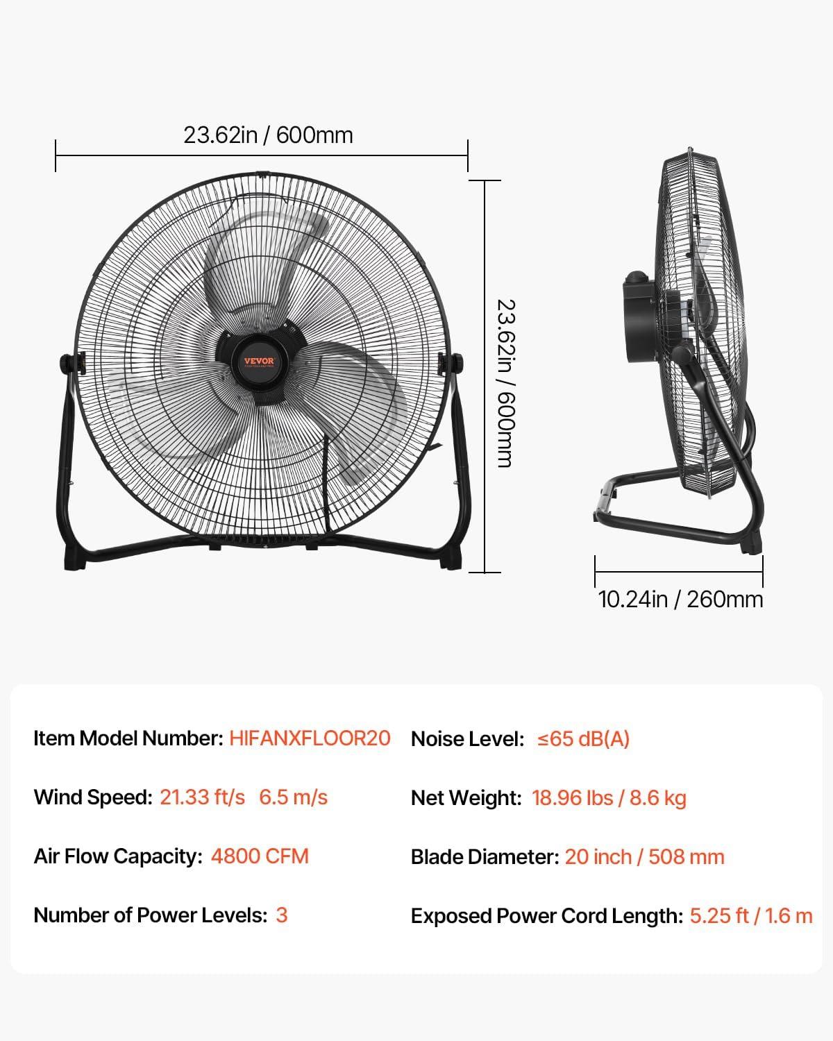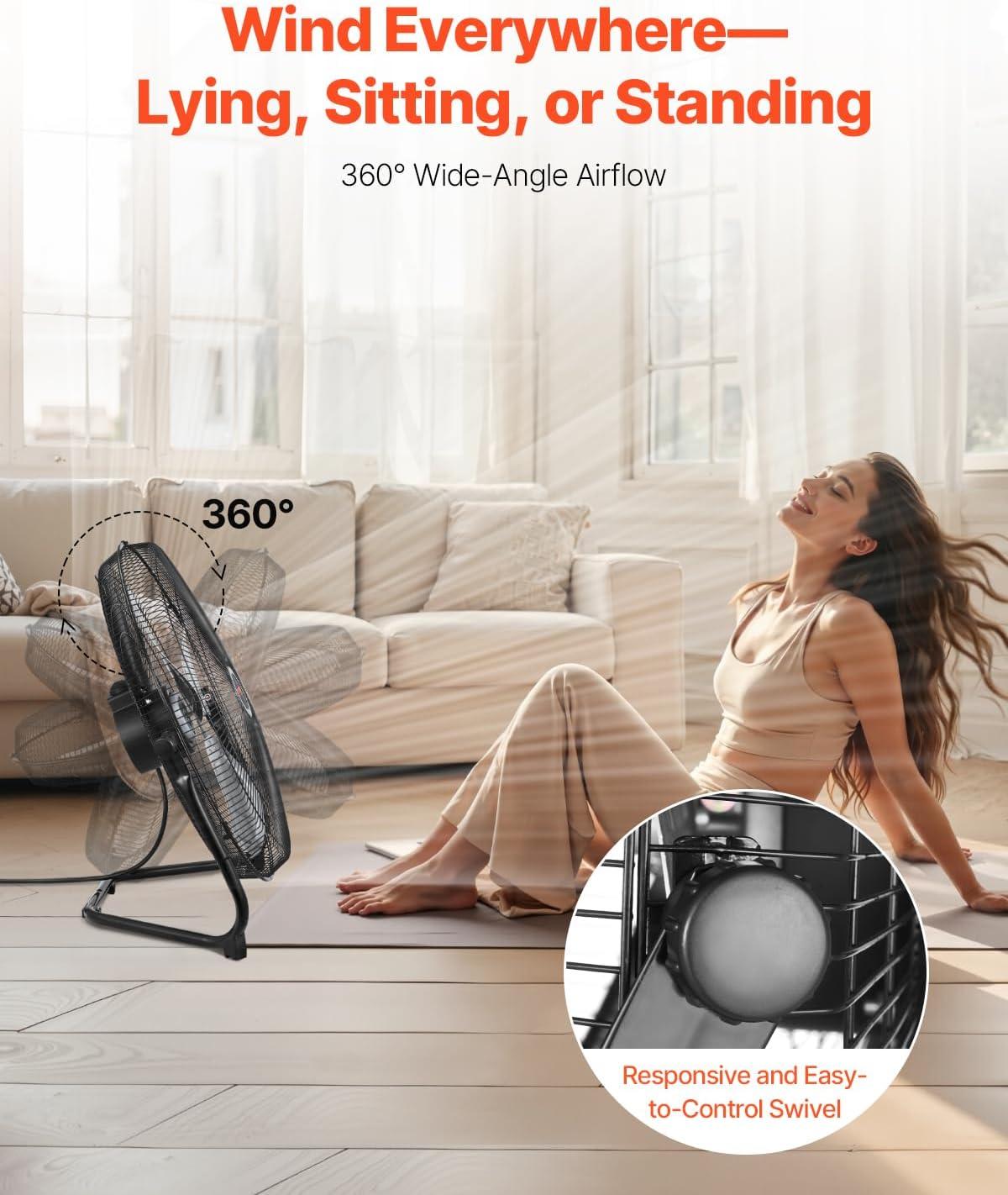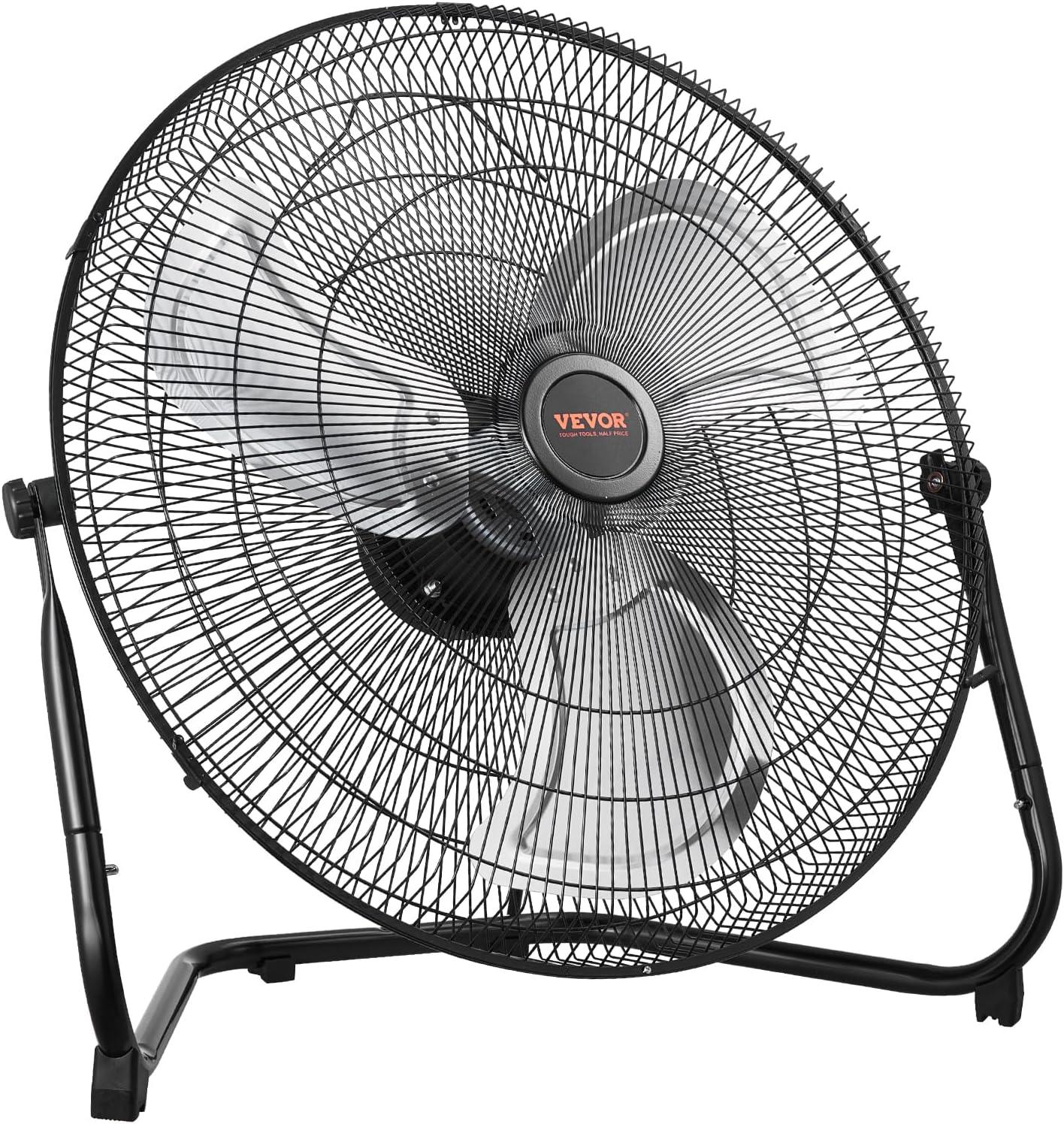 VEVOR 10 inch Rechargeable Battery Operated Camping Floor, High Velocity Portable Outdoor Fan with Metal Frame, Copper Brushless Motor, 360-degree Manual Rotation,for Fishing,Traveling, Picnicking(20in)