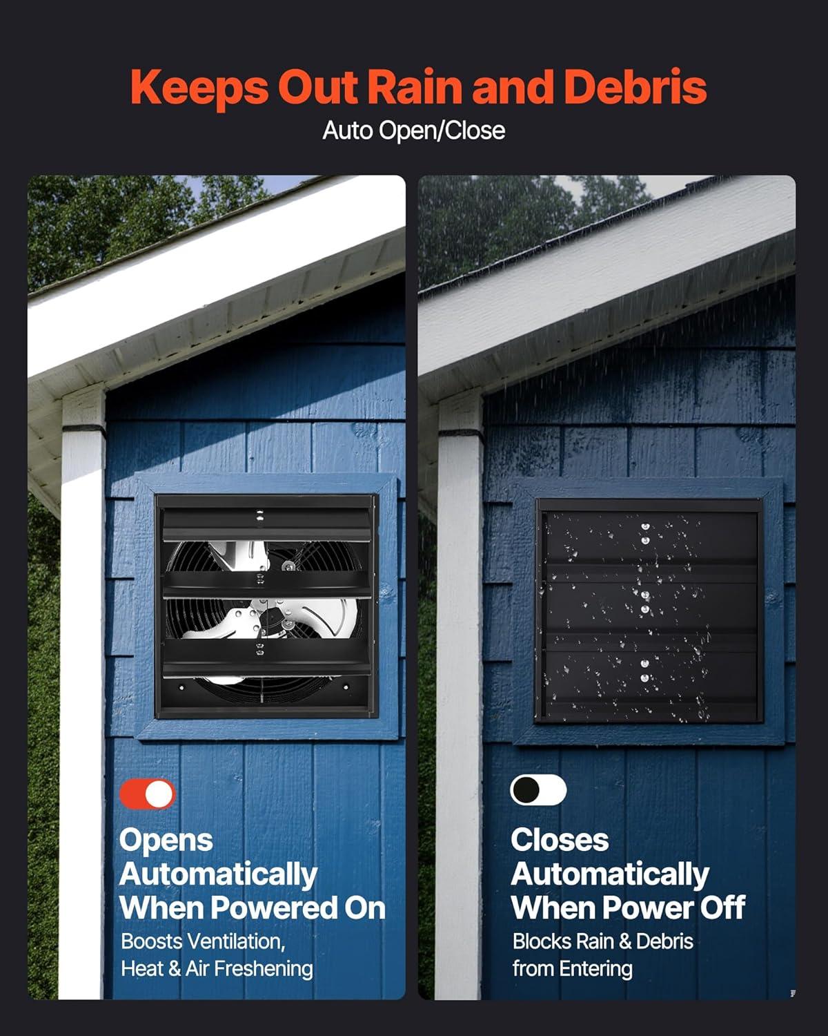 Rain Guard: Shutters open when powered for ventilation and deodorizing, then close when off to block rain and small things, reliable protection for an attic exhaust fan setup