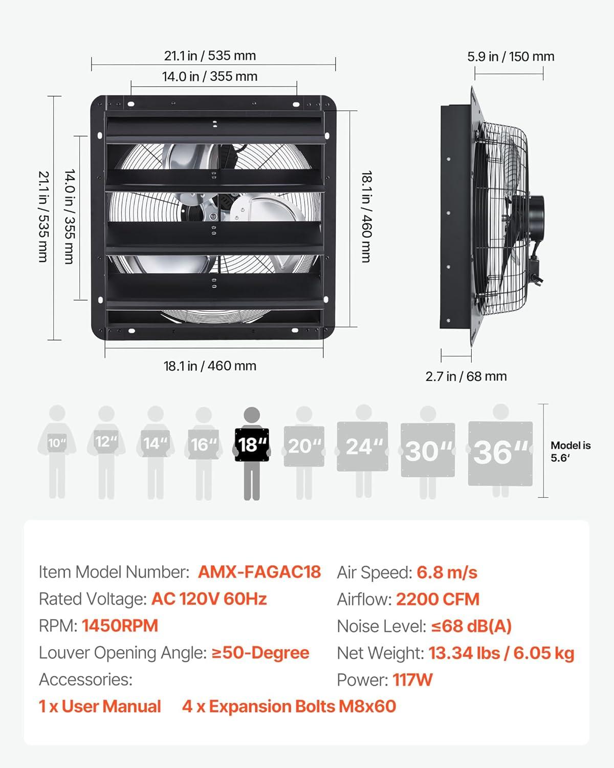 Rapid Venting: This shutter exhaust fan delivers 900 CFM to quickly expel stale air, floating dirt, heat, and bad smells, keeping indoor air fresh. Also works as a high-airflow exhaust fan for sheds and workshops