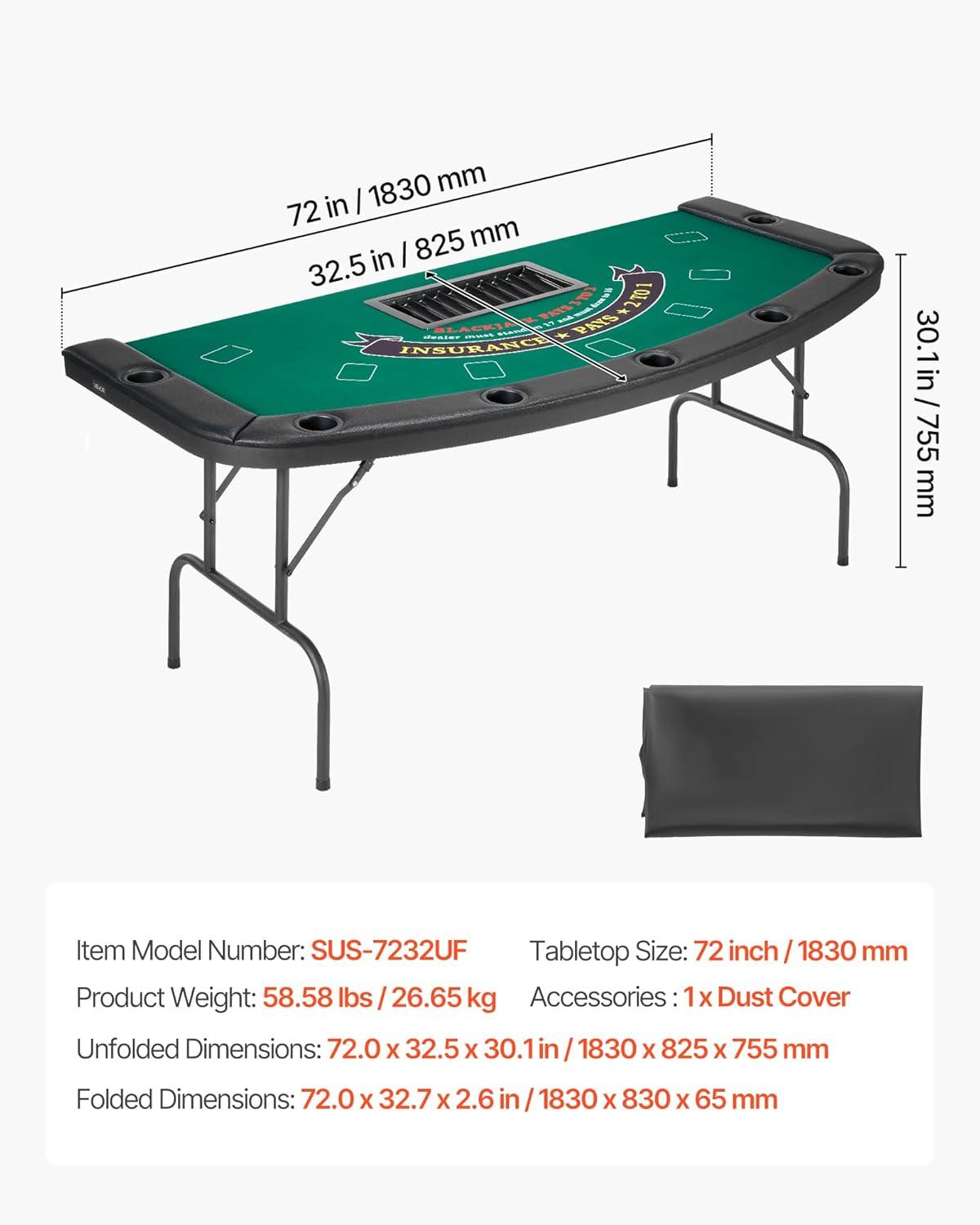 Tool-Free Assembly: Designed with a foldable feature and a secure lock, this blackjack texas holdem poker table allows you to quickly set it up or fold it for storage. The safety lock firmly secures the table, preventing it from collapsing or coming loose when in a folded state. When not in use, you can easily store it in a corner without taking up too much space. It also comes with a dust cover to keep the table clean.