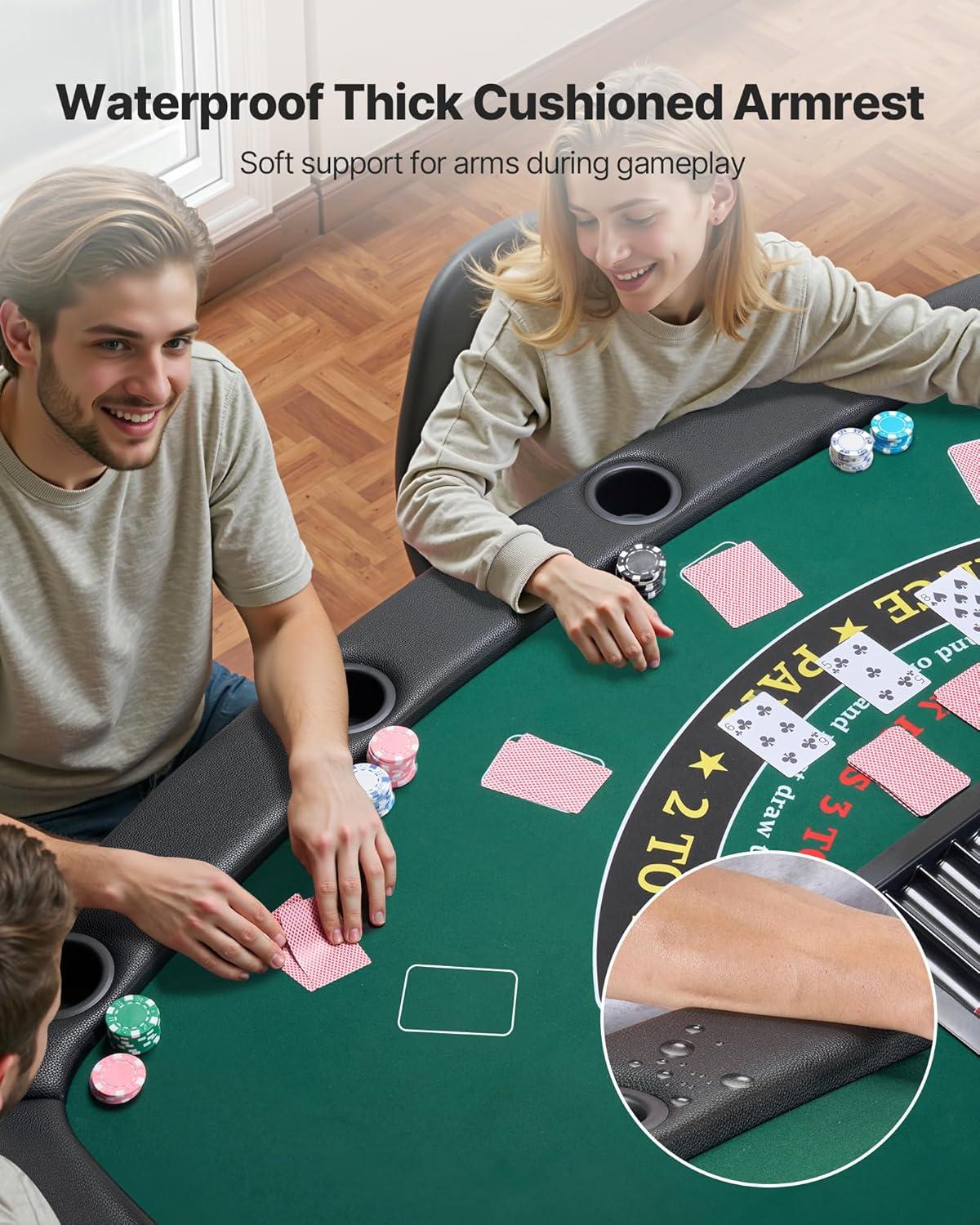 84 inch Large Poker Table: This perfect-sized poker table accommodates up to 10 players simultaneously, making it ideal for family gatherings, entertaining friends, bar games, and more. The comfortable and convenient gaming experience will make you feel like you're in a Las Vegas casino, allowing you to enjoy games like Texas Hold'em and other card games to your heart's content.