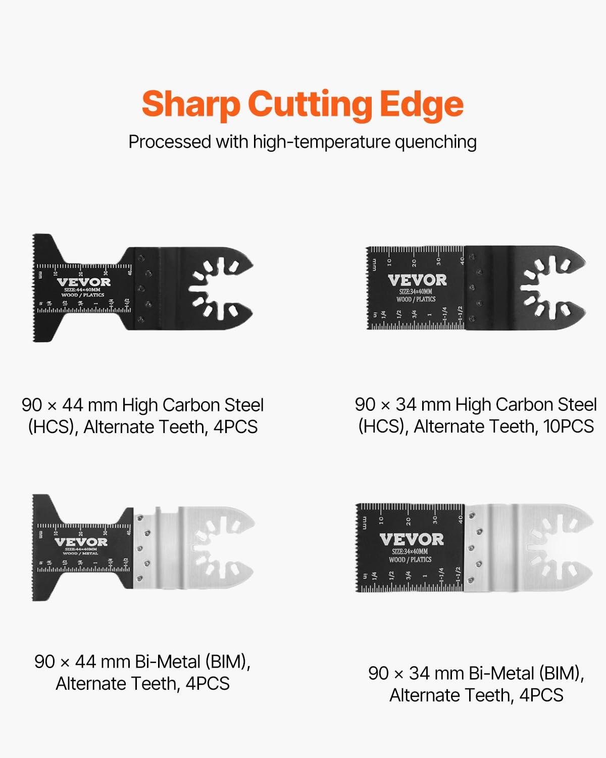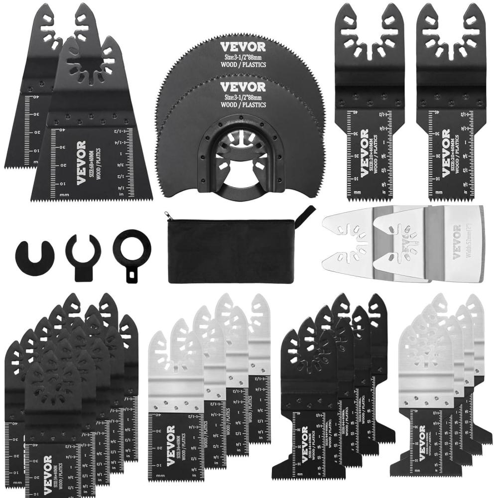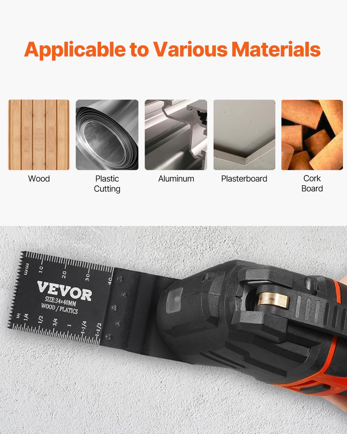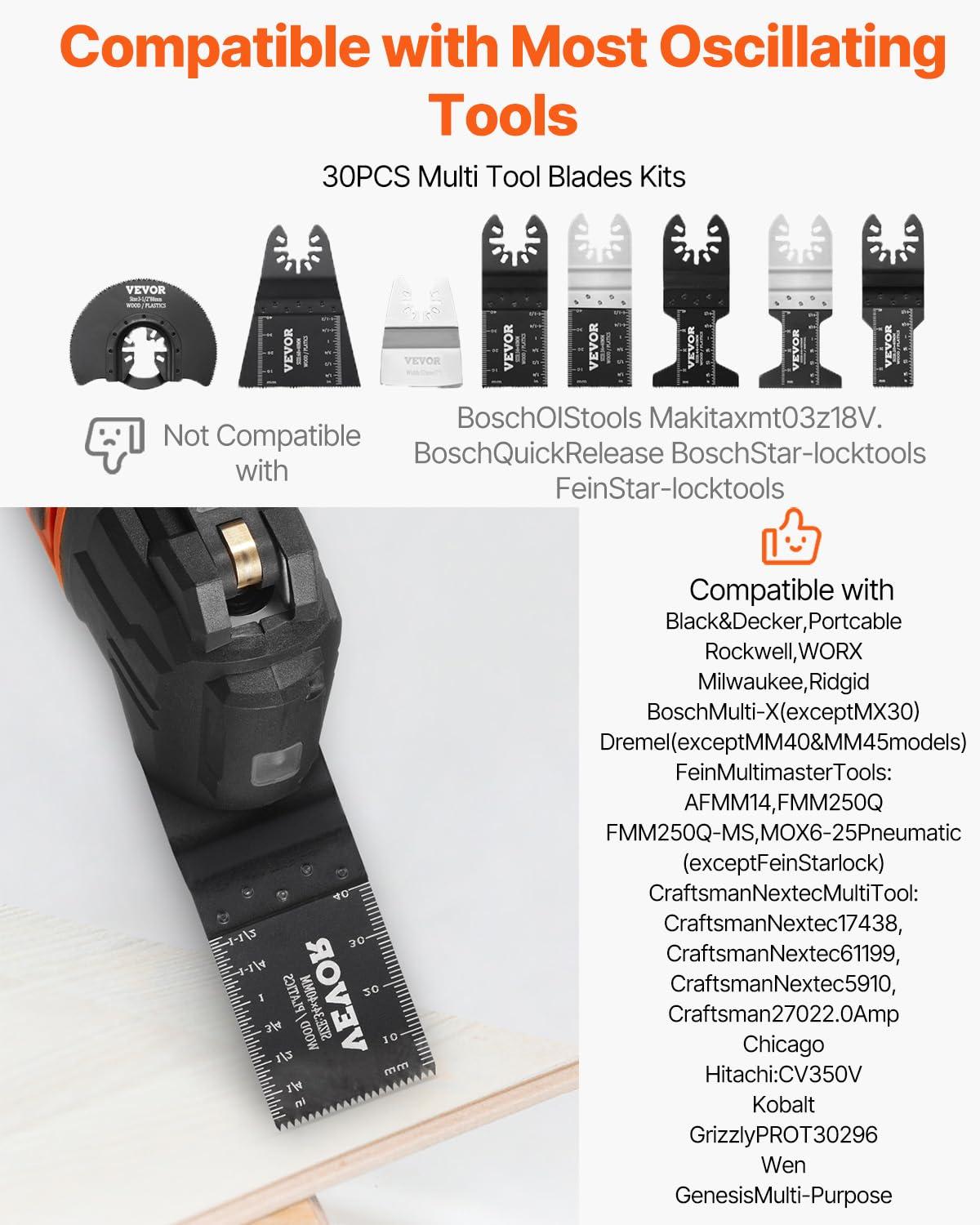 VEVOR 100PCS Oscillating Saw Blades, Quick Release Multitool Blades Kit, HCS Tool Blades for Wood Plastic, Compatible with Dewalt Dremel Fein Worx Bosch Makita Milwaukee(30 PCS)