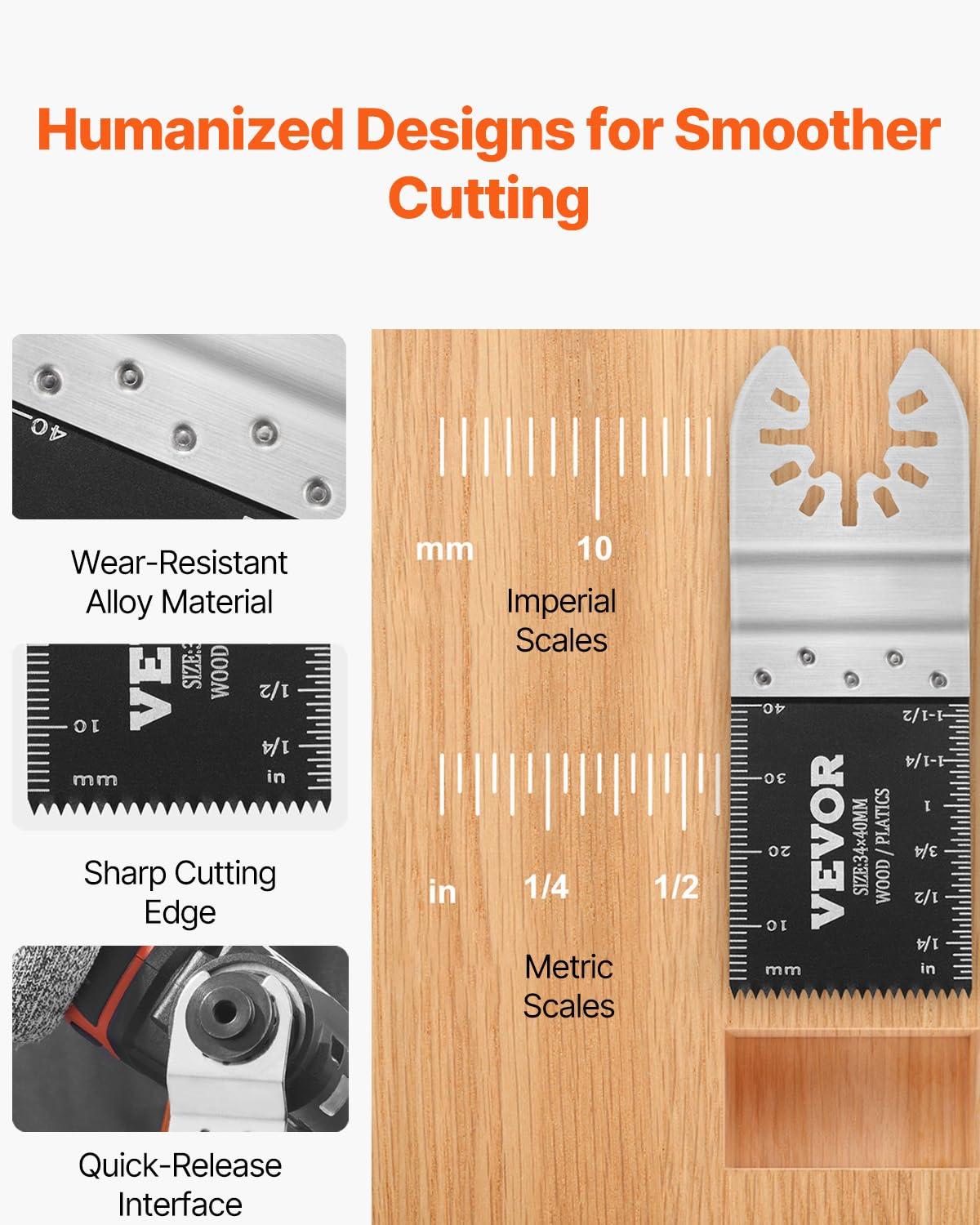 Never Miss a Cut: The built-in length markers on both sides are marked with metric and imperial size measurements. The marks ensure accurate cuts easily and quickly. These multitool blades can meet a variety of needs and can be used in workshops, households, or other places.