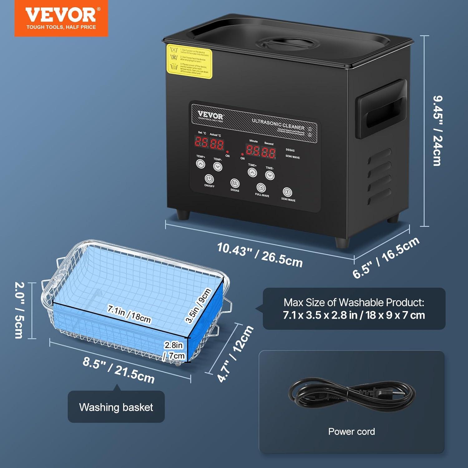 Versatile Use: Ideal for cleaning jewelry, automotive parts, eyewear, and more. Whether you're a professional or an everyday user, the VEVOR Ultrasonic Cleaner is a reliable tool for all your cleaning needs.