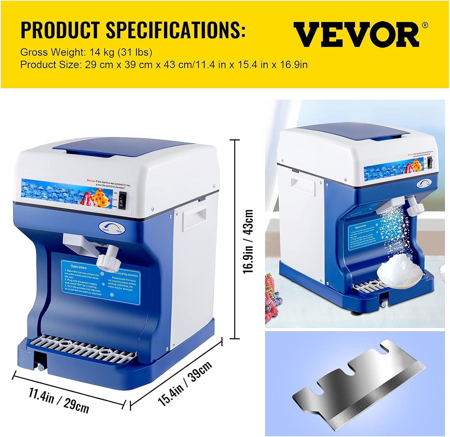 VEVOR 110V Electric Shaved Ice Machine 500W Snow Cone Maker Tabletop w/Adjustable Ice Texture, Ice Shaving Machine 265LBs/hr for Home and Commerical Use(661LBS/H-300W)