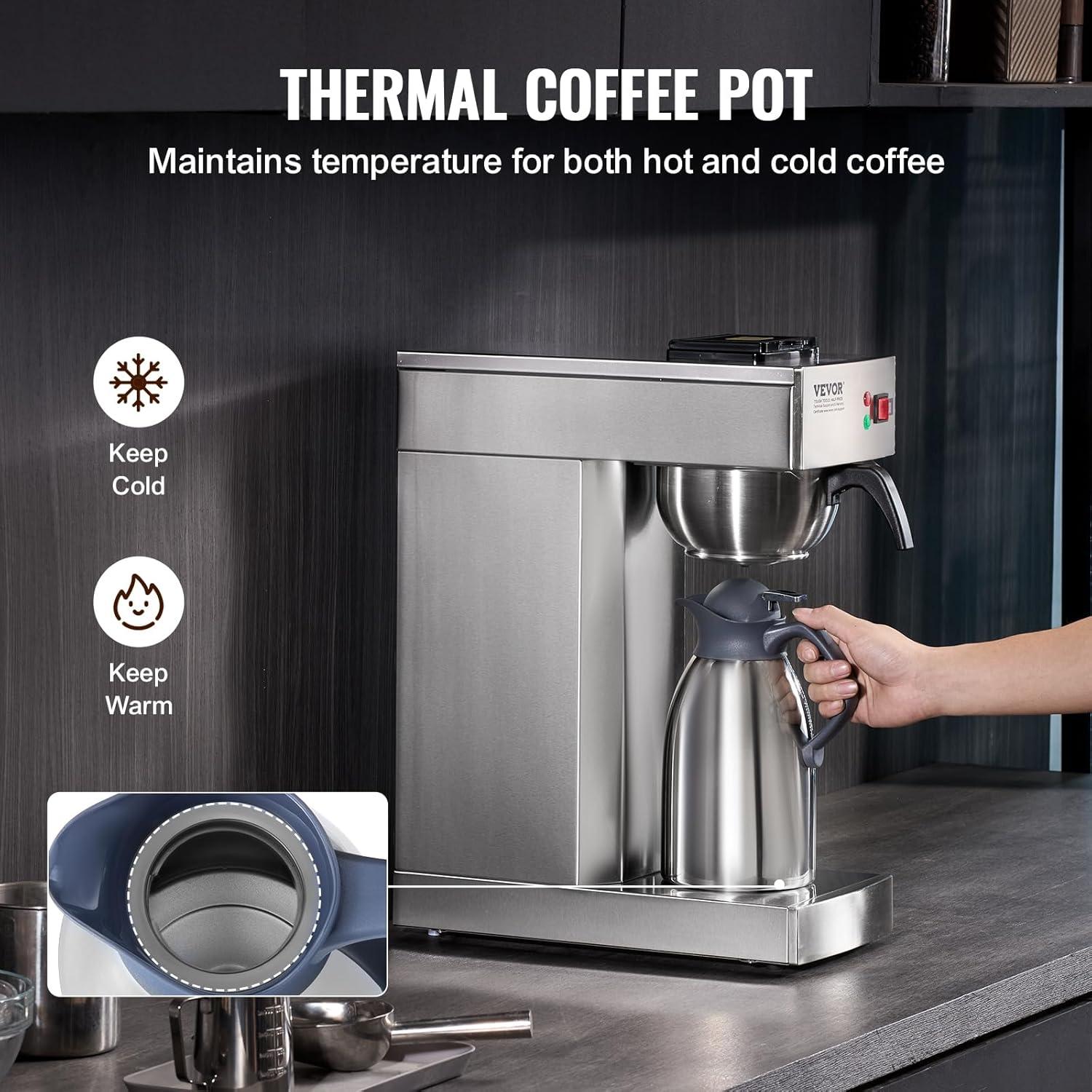 VEVOR 12 Cups Commercial Drip Coffee Maker, Coffee Maker Machine with Thermal Carafe to Keep Warm or Cold, Stainless Steel Pour Over Coffee Brewer for Restaurant, Office, Cafe