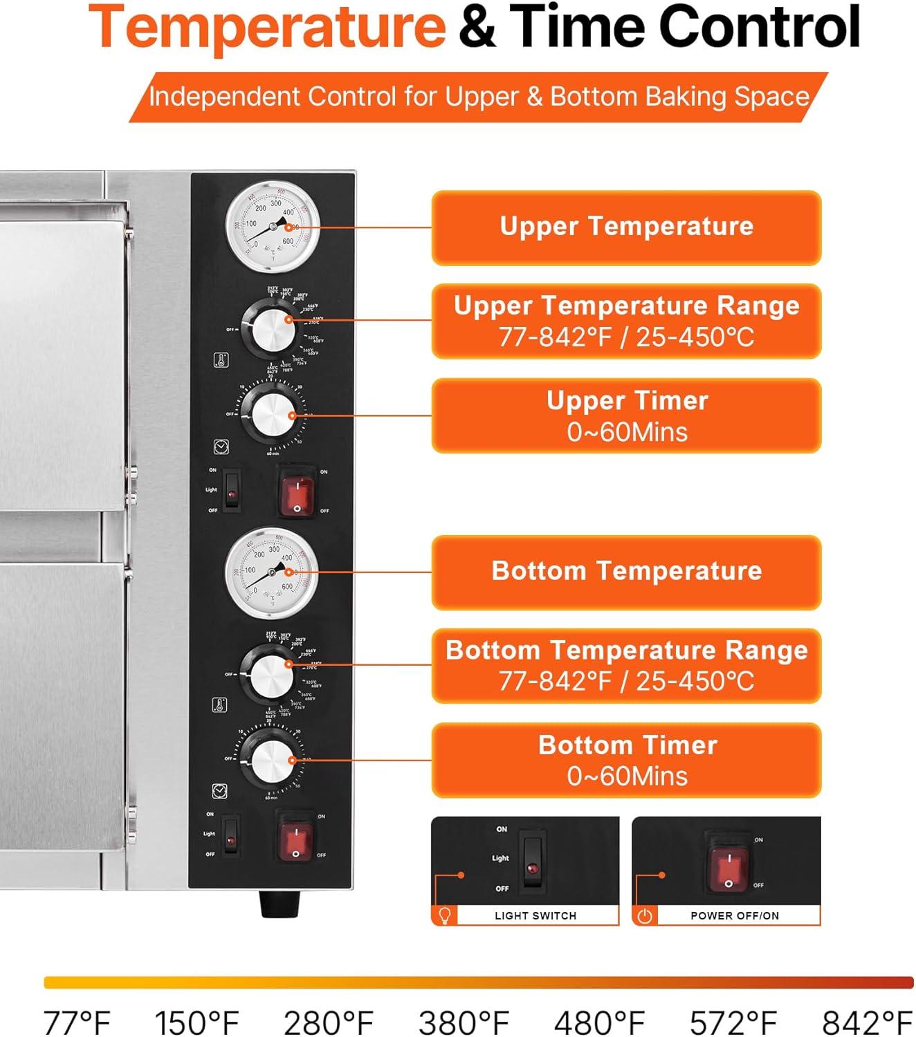 Temperature Knob: The temperature knob offer precise temperature control, making it easier to meet your baking needs. With a wide temperature range of 0-850℉, you can freely adjust the temperature to make your favorite pizza.