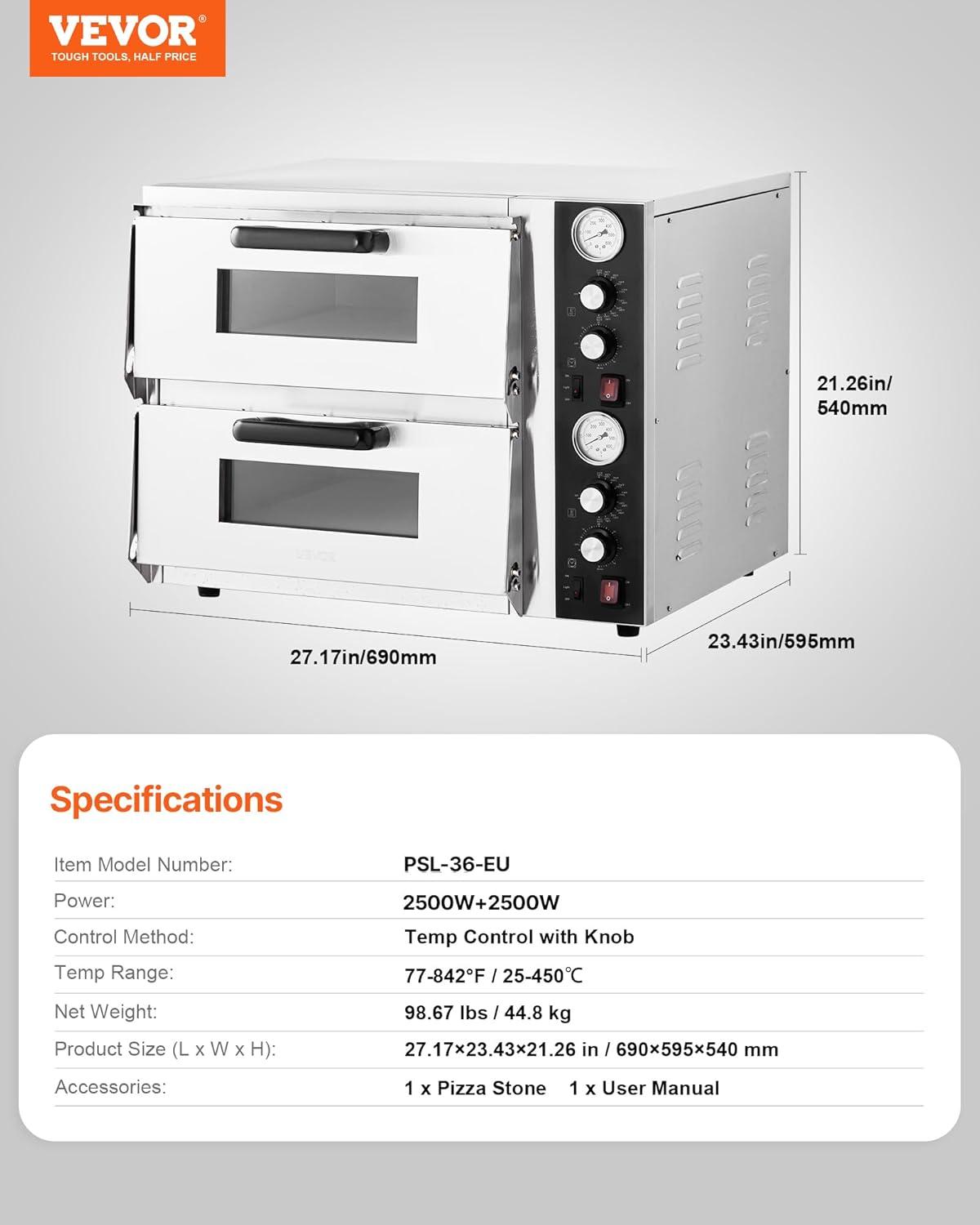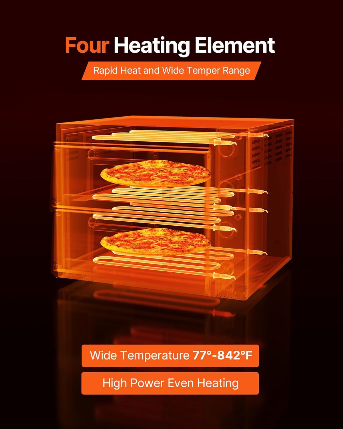 Speed & Flavor: VEVOR countertop pizza oven heats to 700℉ in just 15 minutes for fast, crispy pizzas. With a max temperature of 850℉, it’s perfect for that pro-level finish! Great for pizzas, juicy roasts, savory fish, and more—our electric oven brings quick, delicious flavor right to your kitchen countertop.