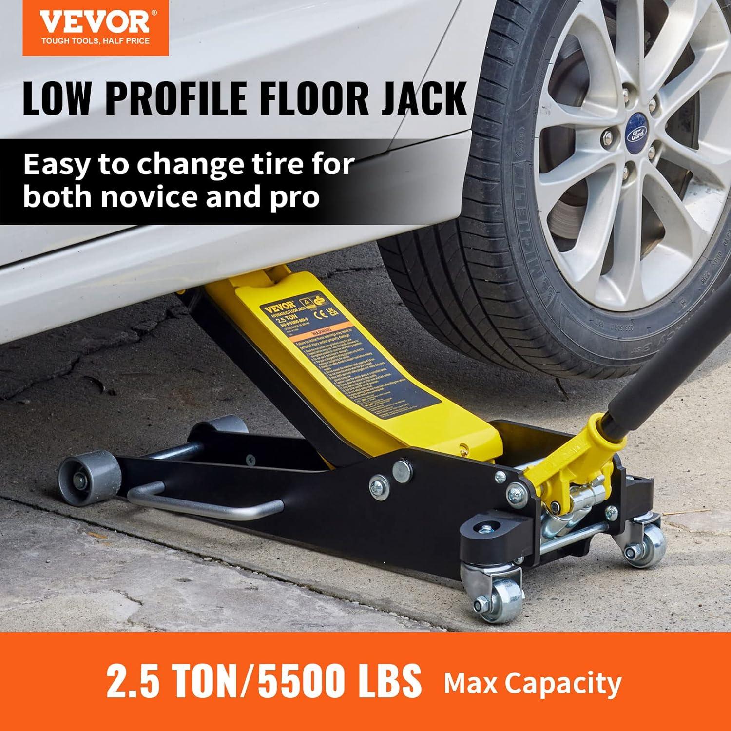 Jack it Up: 2.5 tons/5500 lbs strong loading capacity, VEVOR's floor jack can help you raise your car for whatever reason. Ensures your lifting operation is reliably and securely. Replace a tire, change oil or maintain the brake, to take matters into your own hands!
