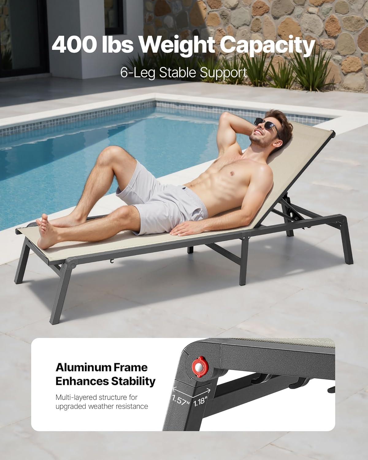 Portable & Easy to Install: The outdoor chaise lounge has a lightweight aluminum frame and a foldable design for easy storage and transport. Unfold the lounge chair after unboxing. It's convenient and effortless.