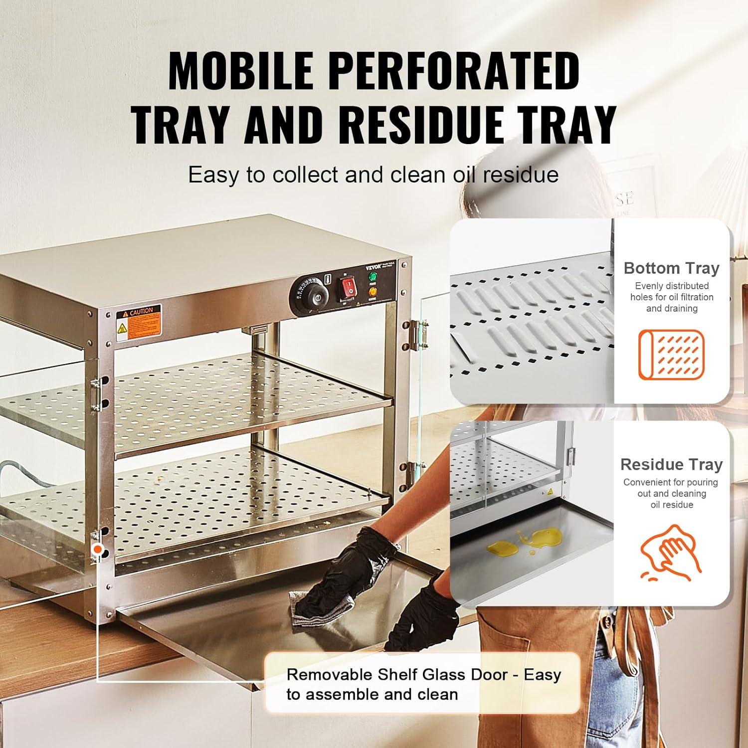imageVEVOR 2Tier Commercial Food Warmer Display 800W Food Display Warmer with Light to Enhance Food Display 86185 Temperature Control 58L Large Capacity for Hamburger Pizza Bread Fried Chicken