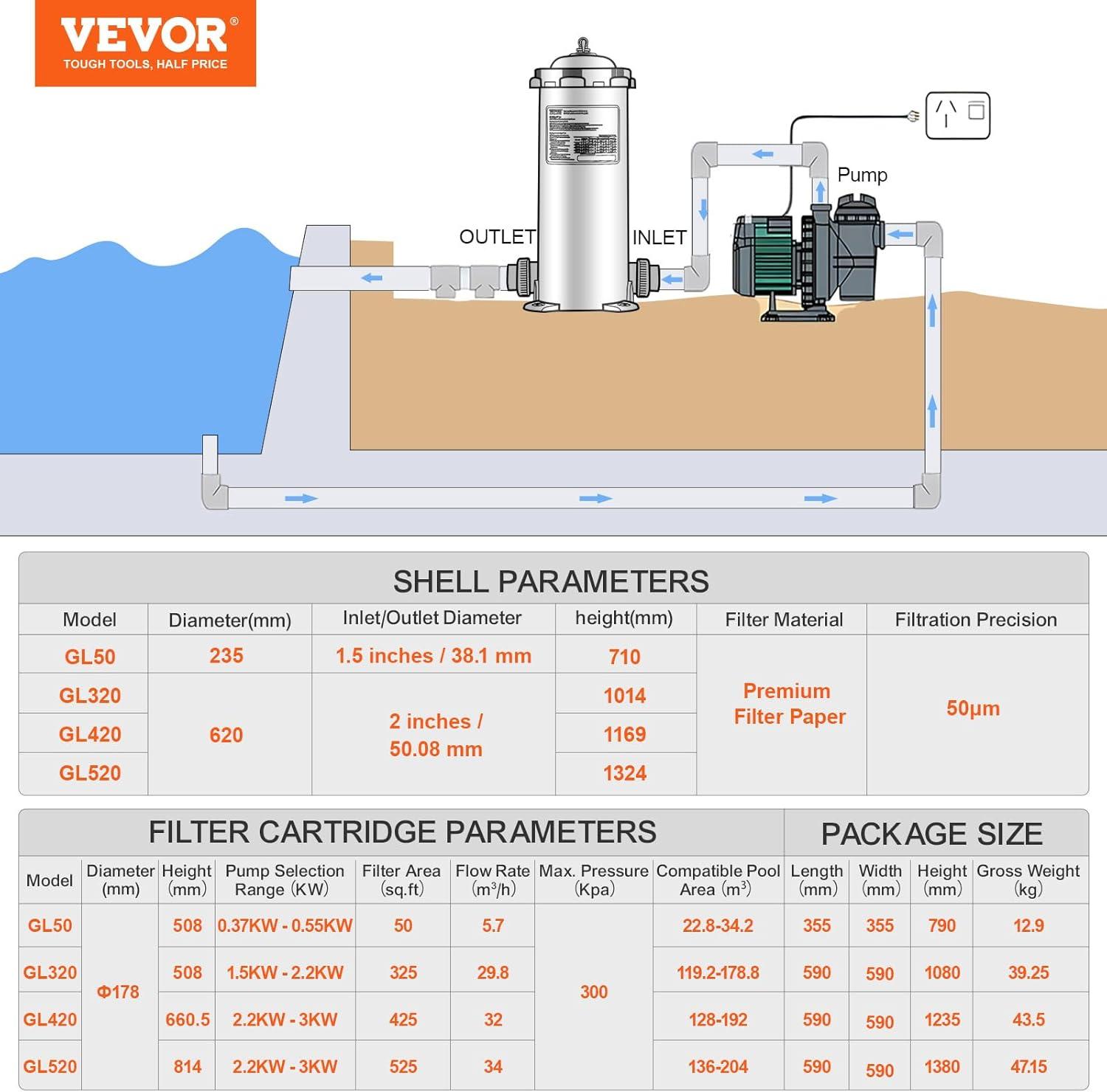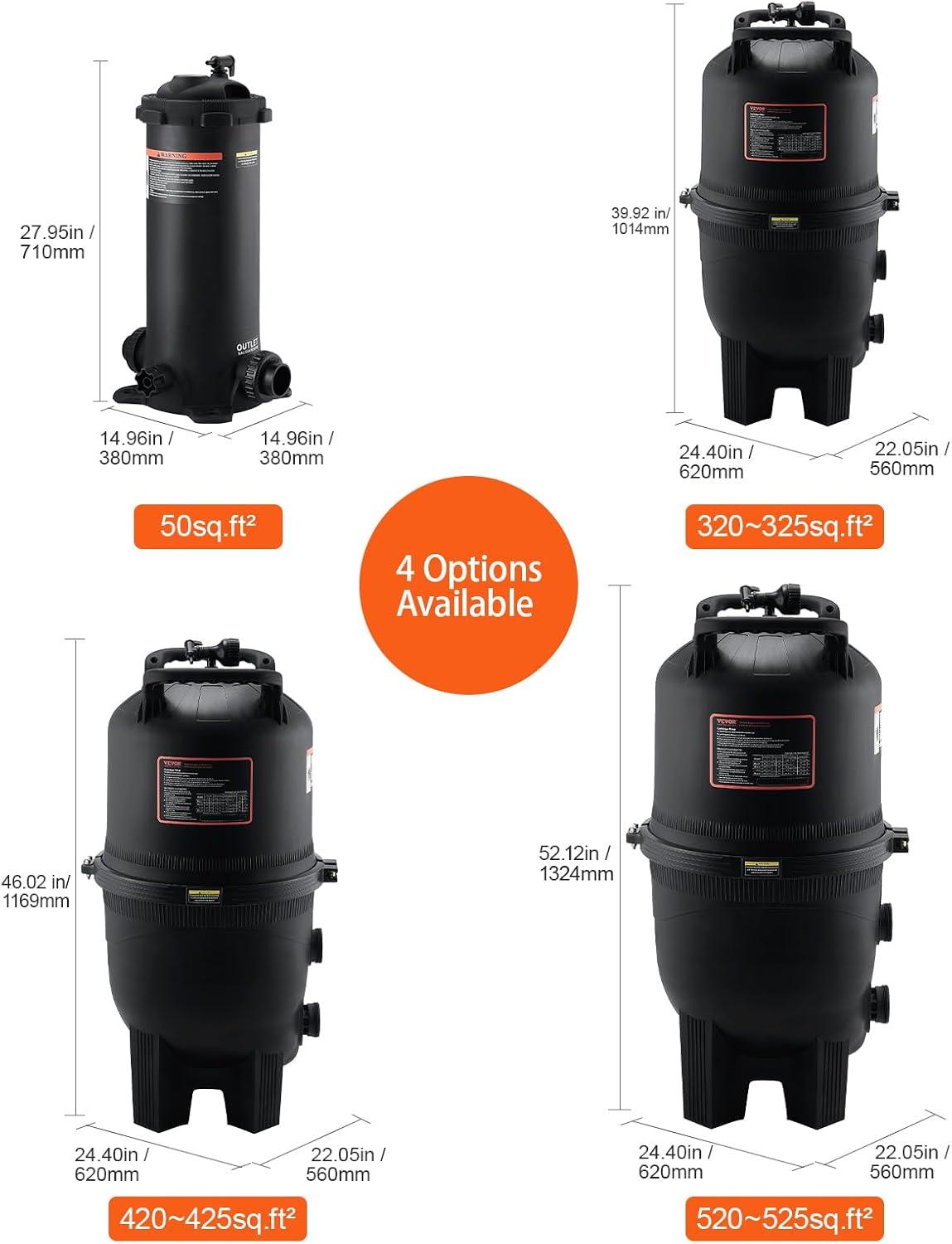 Pool Cartridge Filter with 325sq.ft Filter Area: Our powerful filter can easily handle pool water volumes ranging from 119.2 to 178.8 cubic meters, suitable for homes, hotels, and schools, providing unprecedented cleanliness to your pool. Our filter is easy to clean and maintain, saving you a lot of time and effort. It offers excellent quality and peace of mind.