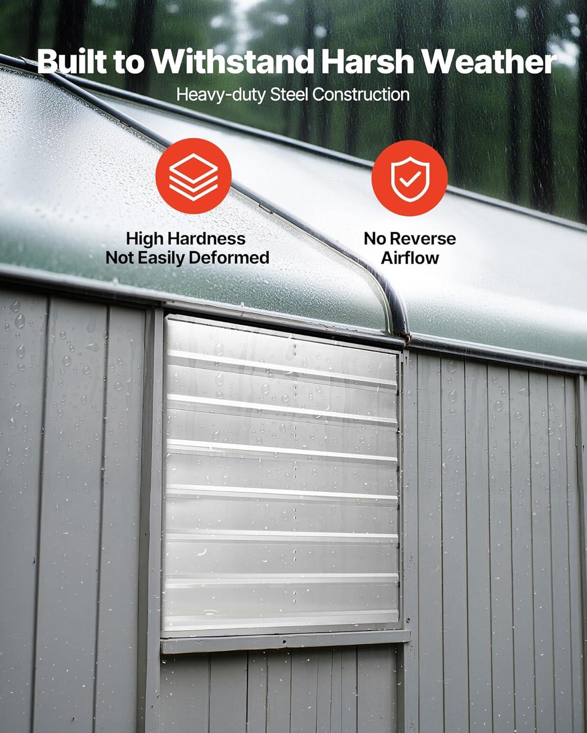 Rust-proof Material: The shutter exhaust fan has a rugged all-metal structure and features a galvanized steel frame, aluminum alloy fan, and shutter, which is highly resistant to weather, liquid, and dust.