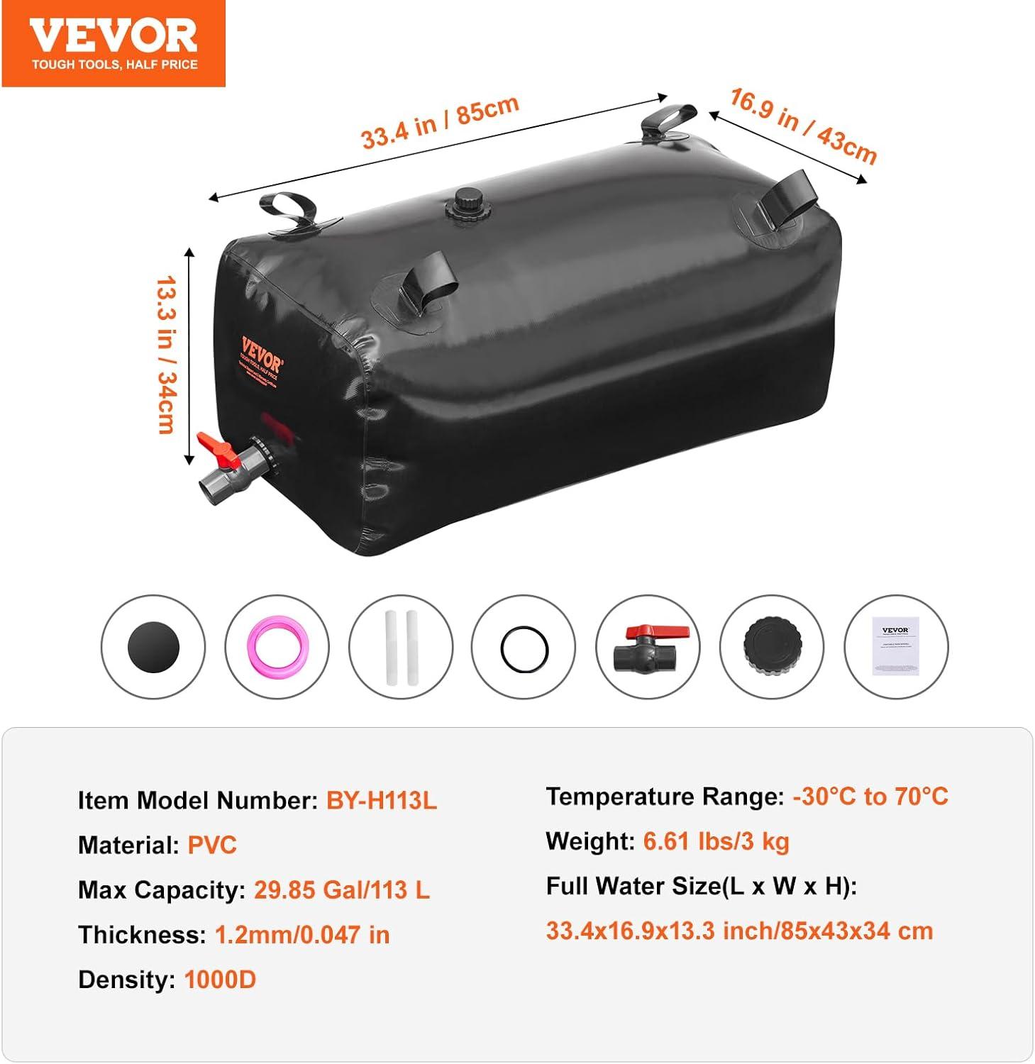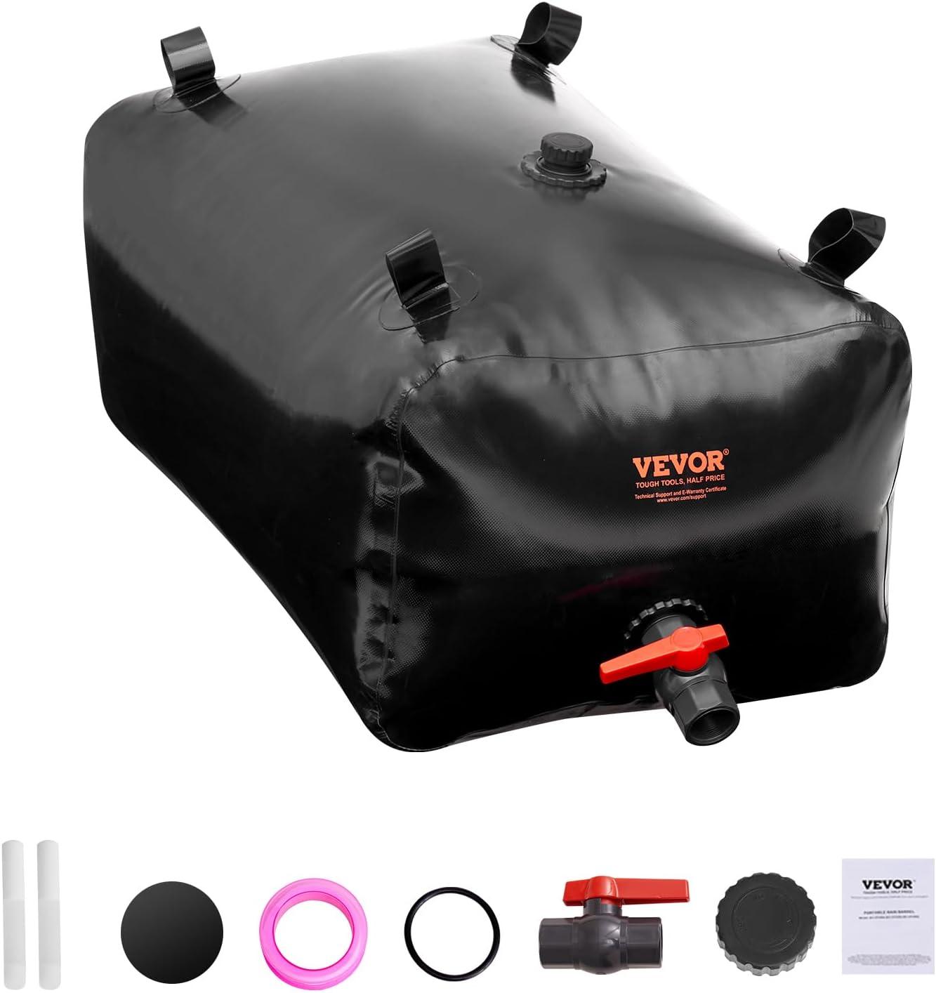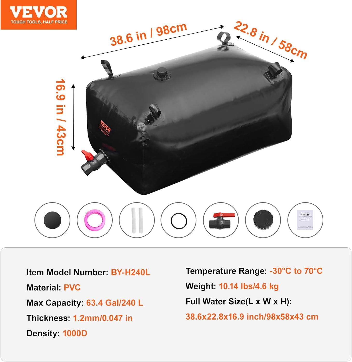 VEVOR 240L/63.4 Gallon Water Storage Bladder, Portable RV Water Tank, 1000D PVC Collapsible Water Storage Containers, Soft Water Storage Bag, Water Bladder,Camping, Emergency Water(Black)