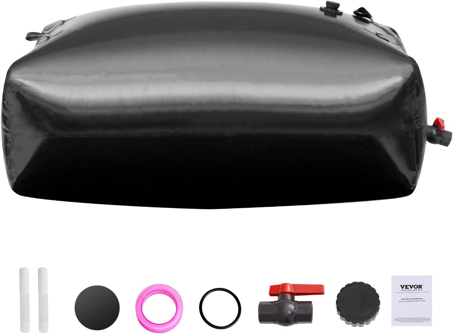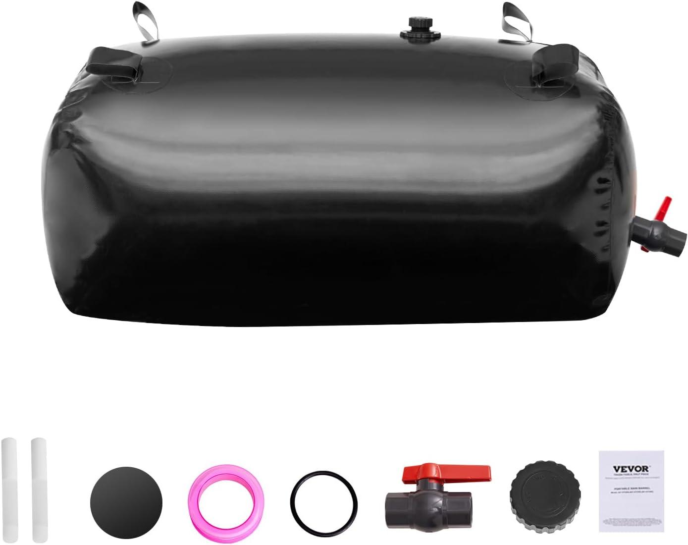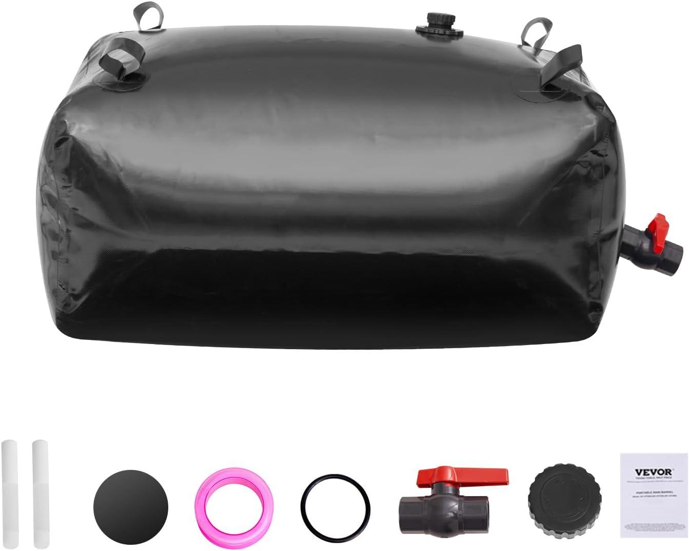 VEVOR 240L/63.4 Gallon Water Storage Bladder, Portable RV Water Tank, 1000D PVC Collapsible Water Storage Containers, Soft Water Storage Bag, Water Bladder,Camping, Emergency Water(Black)