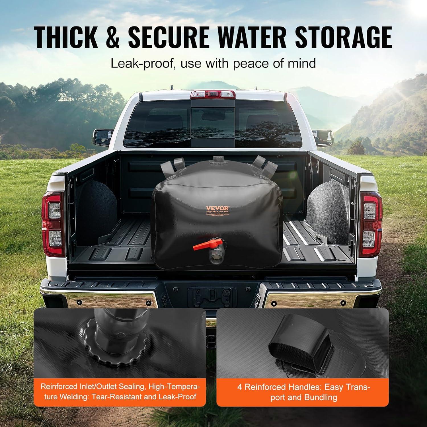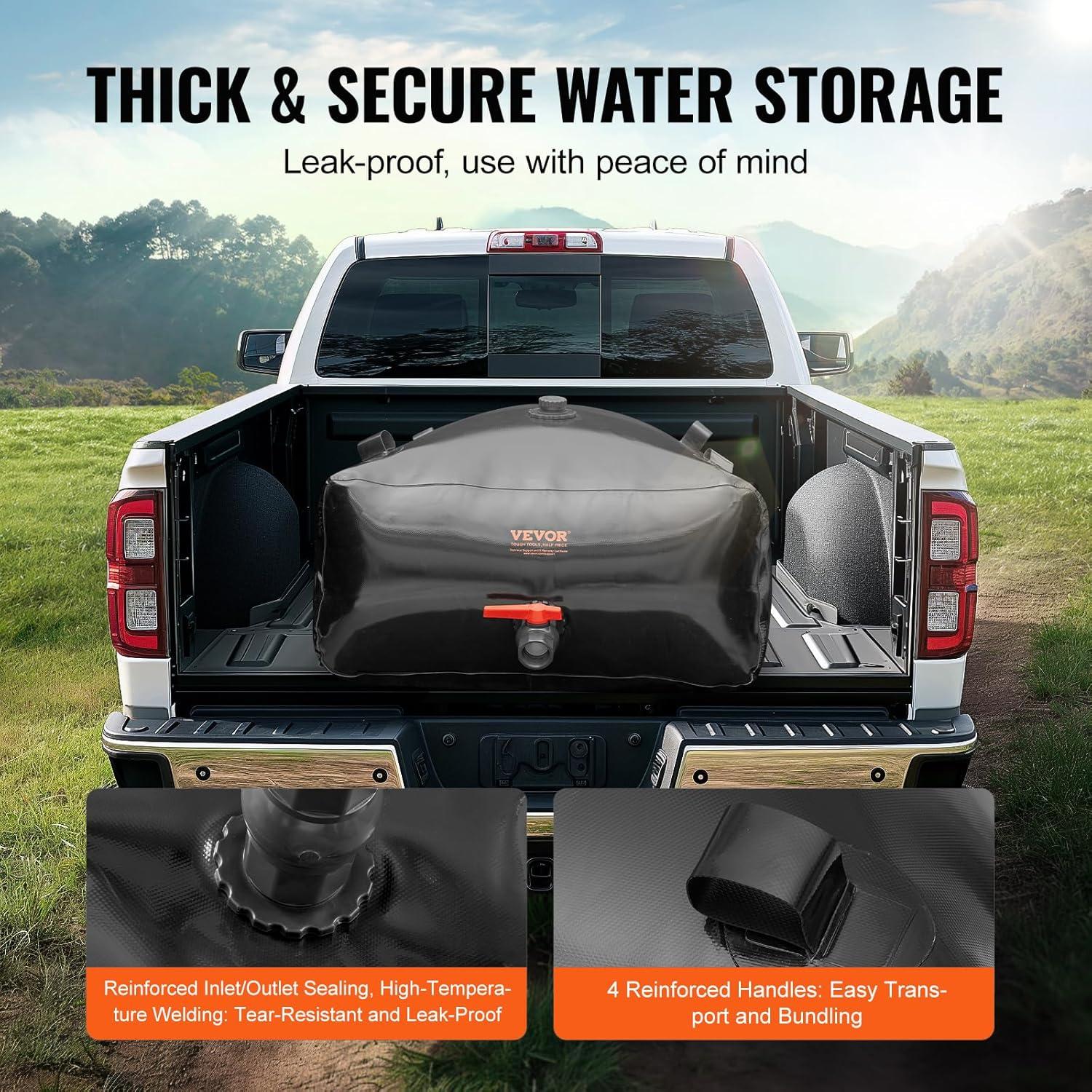 VEVOR 240L/63.4 Gallon Water Storage Bladder, Portable RV Water Tank, 1000D PVC Collapsible Water Storage Containers, Soft Water Storage Bag, Water Bladder,Camping, Emergency Water(Upgraded Black)
