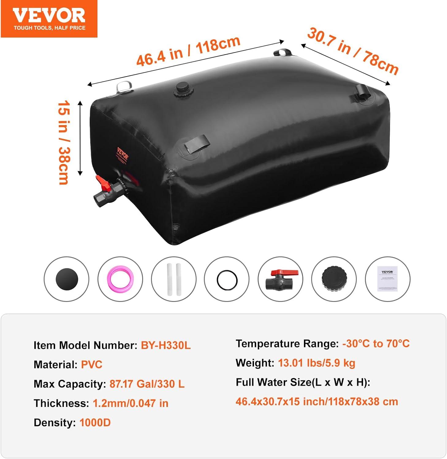 Be the first to review “VEVOR 240L/63.4 Gallon Water Storage Bladder, Portable RV Water Tank, 1000D PVC Collapsible Water Storage Containers, Soft Water Storage Bag, Water Bladder,Camping, Emergency Water(Black)”