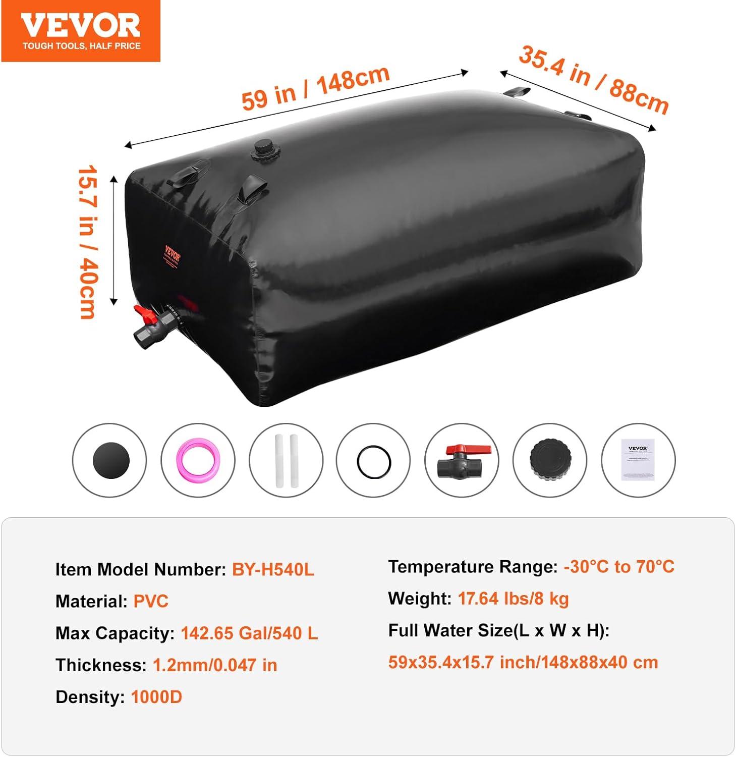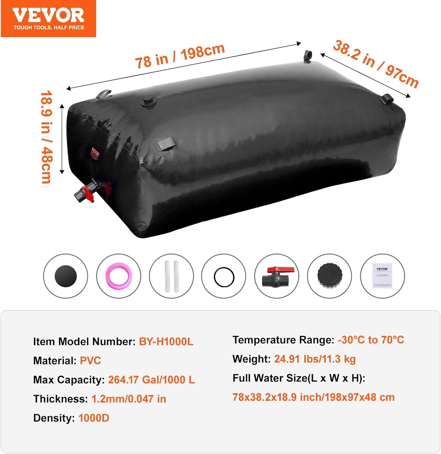 imageVEVOR 240L634 Gallon Water Storage Bladder Portable RV Water Tank 1000D PVC Collapsible Water Storage Containers Soft Water Storage Bag Water BladderCamping Emergency WaterBlack