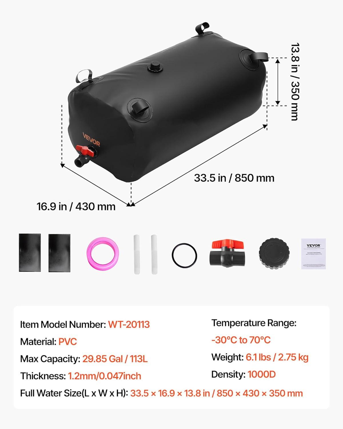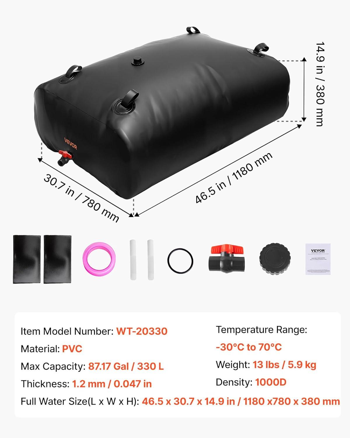 Long-lasting Use: Our 1000D double-layer PVC water storage bladder features outstanding durability. It is also rainproof, fire-resistant, and wear-resistant, maintaining excellent performance even in harsh environments. Be your reliable long-term water storage solution.