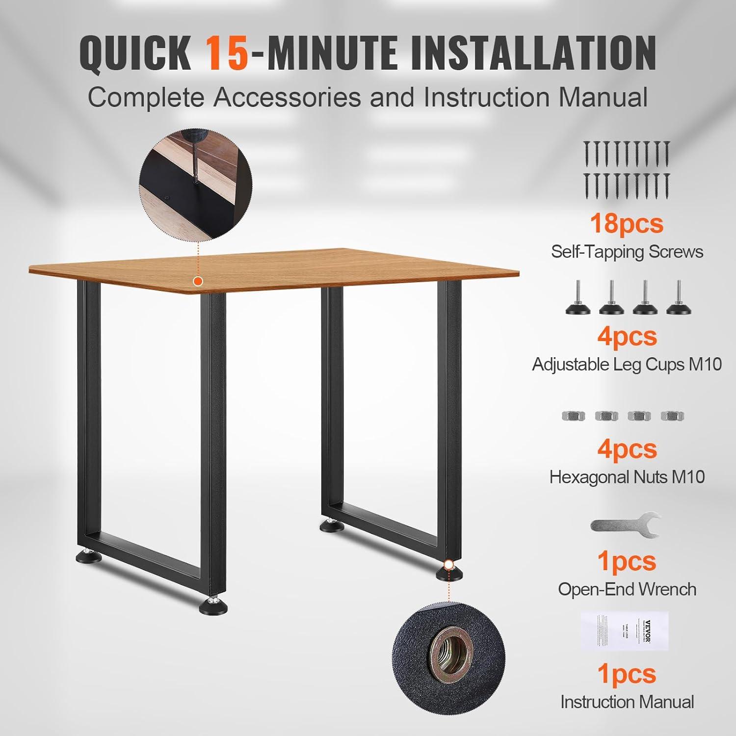 VEVOR 28 Inch Adjustable Furniture Legs, Square Reinforced Steel Office Table Legs Set of 2 for DIY, Max Load 1000 lbs Heavy Duty Desk Legs, Quick Instalation & Rich Accessories Legs Black(28″H x 23.6″W)