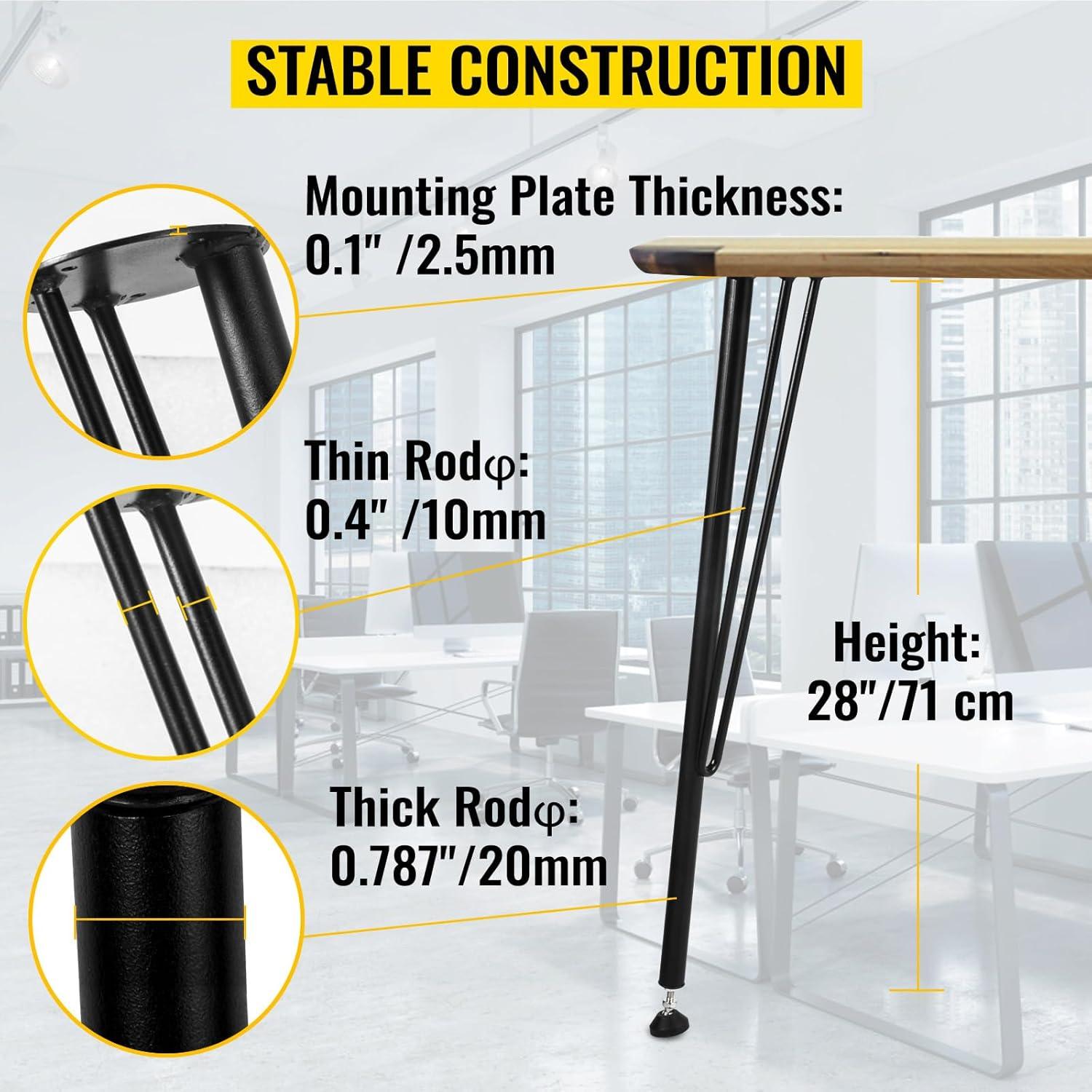 VEVOR 28 Inch Adjustable Furniture Legs, Square Reinforced Steel Office Table Legs Set of 2 for DIY, Max Load 1000 lbs Heavy Duty Desk Legs, Quick Instalation & Rich Accessories Legs Black(28″H x 17.7″W)