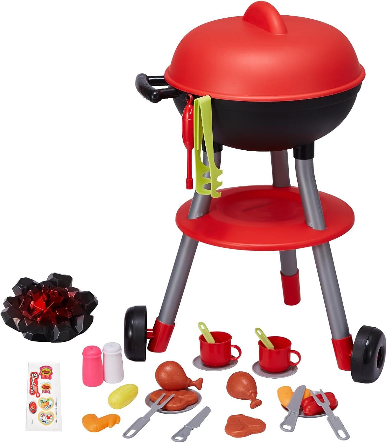 Realistic Grill Playset: Let your little ones enjoy the fun of grilling with our BBQ grill playset! It features realistic lights, cooking sounds, and a charcoal powered by batteries (not included) that lights up when you point the lighter at the red dot. This safe and engaging toy mimics the grilling process, keeping kids away from real barbecues while providing an exciting backyard adventure. Perfect for kids aged 3-5!