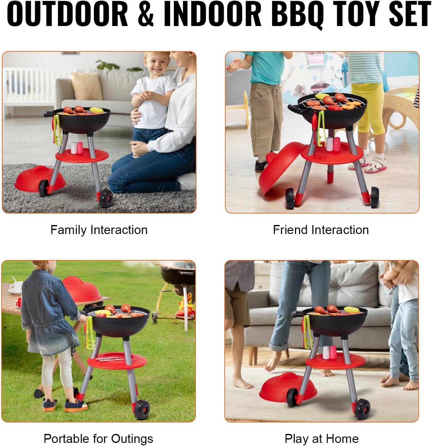Boost Cognitive Skills: Our kids BBQ grill playset isn't just fun—it's educational too! It helps kids improve hand-eye coordination, learn about grilling, and identify different foods. Kids can play independently or with friends. With the set, children can “cook” their toy food while parents prepare real meals, fostering parent-child bonding and social skills.