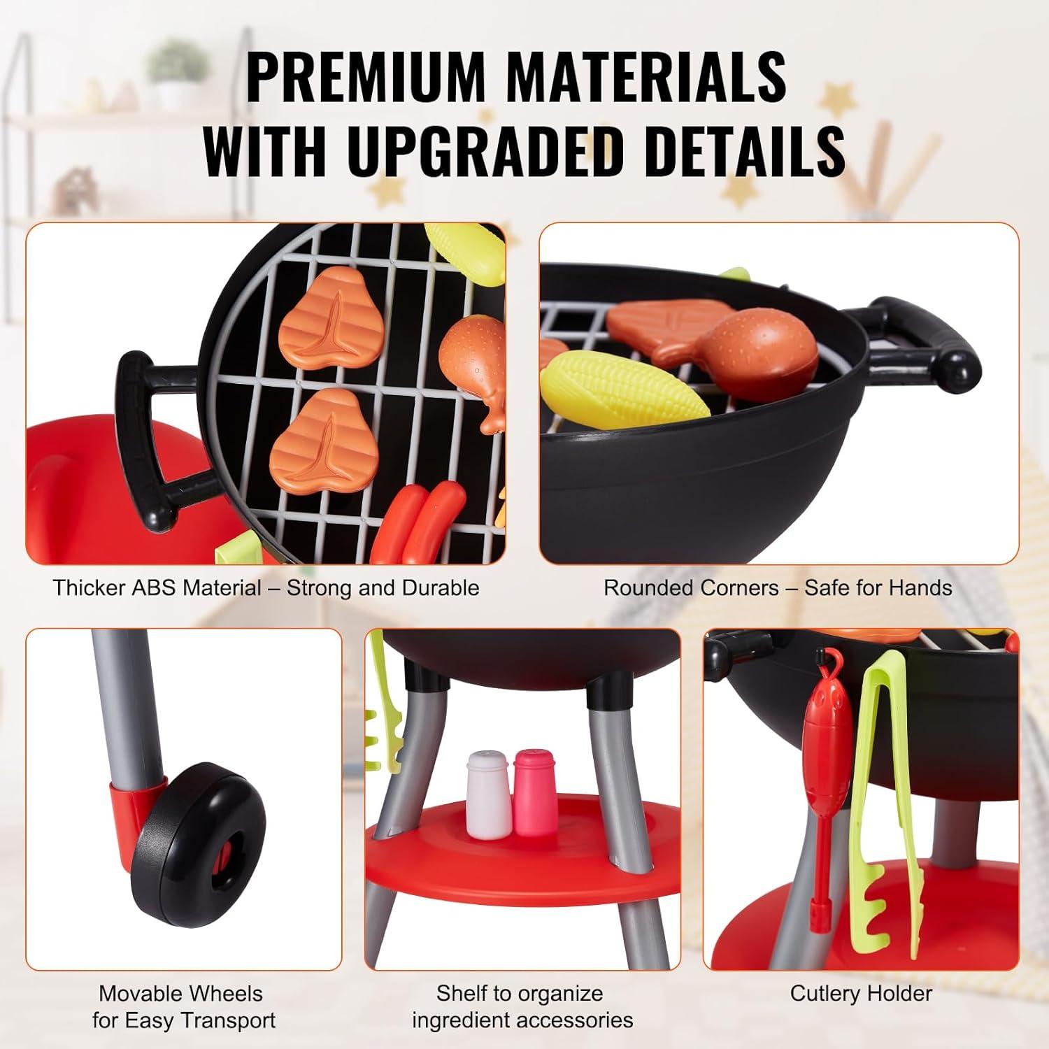 Safe and Durable Materials: Made from high-quality ABS plastic, our kids grill playset is smooth, burr-free, BPA-free, and approved through security tests. It's a great birthday gift for kids aged 3-5 and perfect for outdoor play.