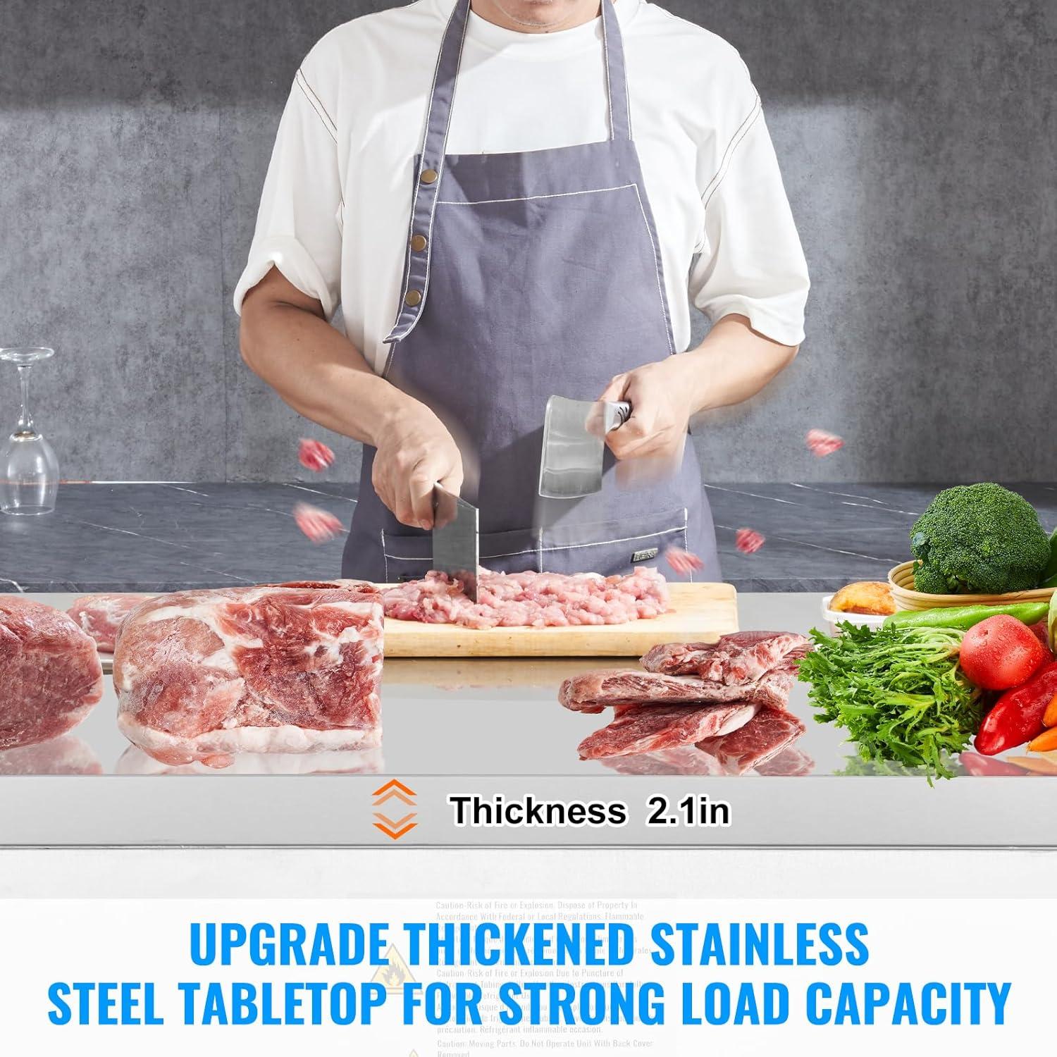 Wide Working Table: Equipped with a chopping board of 5.8 square foot, providing ample space to chop vegetables, mince meat or create a variety of gourmet meals. 2.1 in thick countertop provides you with good stability, and the bottom is equipped with 4 heavy-duty casters so you can move the cabinet whenever you need.