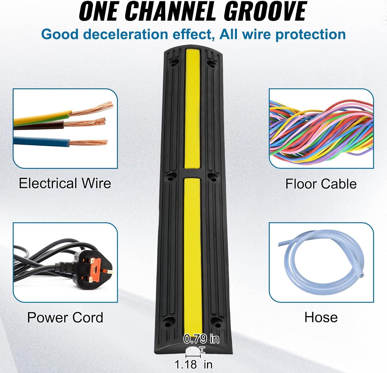 Well Designed 4 Pack 1 Channel: Are you tired of tangled wires? Well, get ready to avoid an accident before it happens! You will receive 4 packs of cable protector ramps measuring 39.37 x 5.91 x 1.22 in. The 1.18 x 0.79 in channel groove design provides enough space for electrical wires, power cords, hoses, and floor cables, protecting them from pedestrians and vehicles. The speed bumps for road protect your safety.