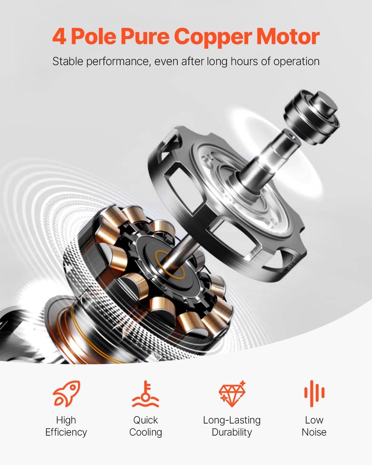 Take on the Heat: Say goodbye to constant downtime with our innovative single stage vacuum pump! The T-shaped heat sink and cooling fan help the pure copper motor to effectively dissipate heat, allowing it to work continuously for over 2 hours. And with added overheat protection, you can enjoy stabilized performance and longer service life for your motor.