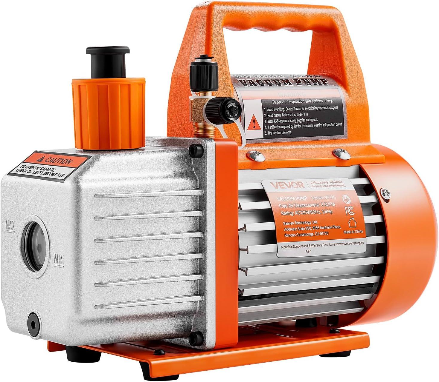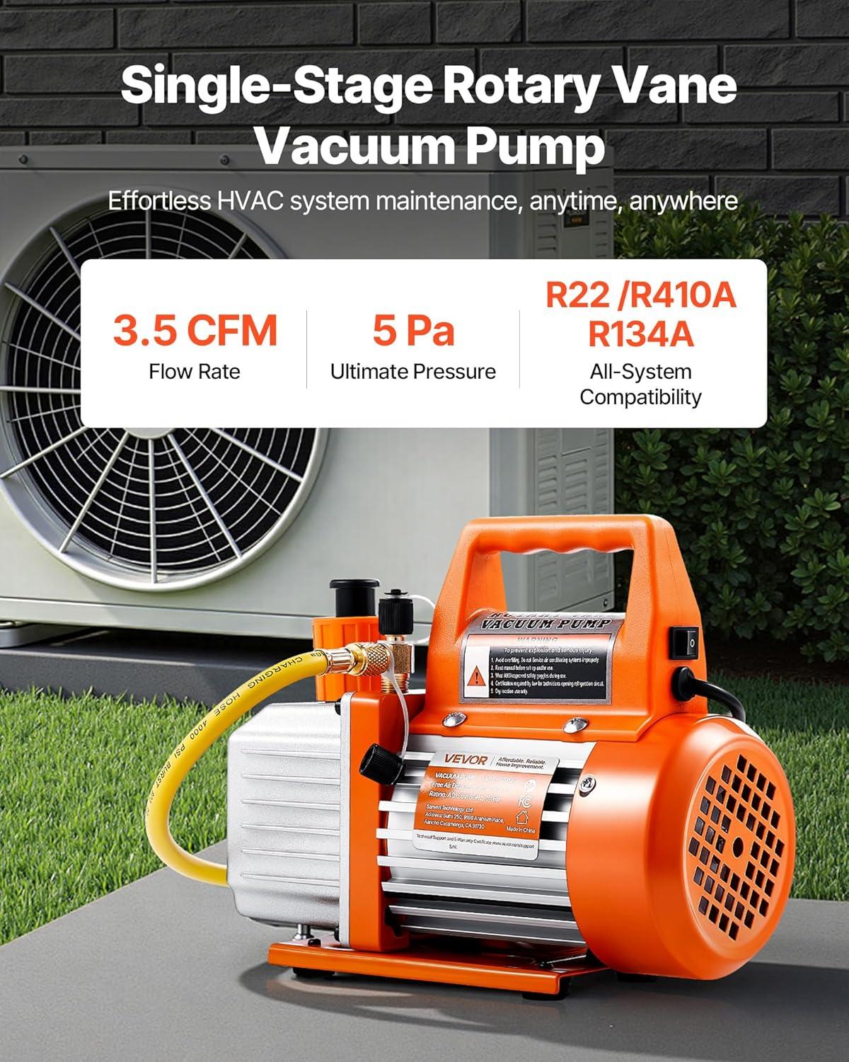 VEVOR 3.5 CFM Vacuum Pump, 1-Stage HVAC Vacuum Pump with Oil, AC Vacuum Pump 134a, 4-Pole Pure Copper Motor-Longer Running Time, for Resin Degassing, Refrigeration Maintenance, Vacuum Package etc.(3.5 CFM 1-Stage)