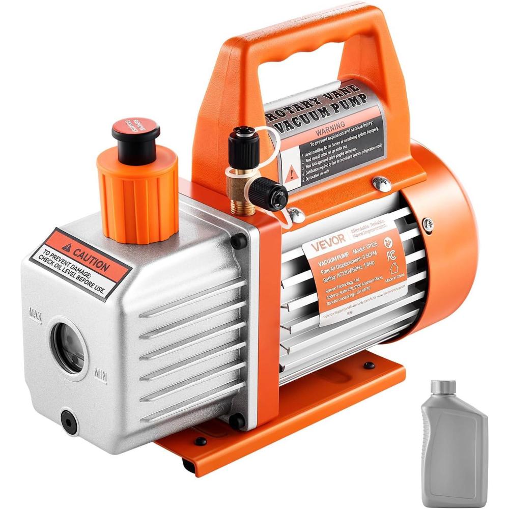 VEVOR 3.5 CFM Vacuum Pump, 1-Stage HVAC Vacuum Pump with Oil, AC Vacuum Pump 134a, 4-Pole Pure Copper Motor-Longer Running Time, for Resin Degassing, Refrigeration Maintenance, Vacuum Package etc.(3.5CFM 1-Stage)