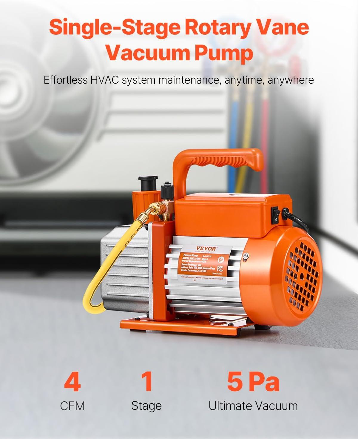 Perfect for Different Needs: Take on a wide range of projects with ease using the VEVOR HVAC vacuum pump! Perfect for both commercial and domestic applications such as refrigeration maintenance, HVAC repair, resin degassing, wood stabilization, etc. With compatibility for refrigerants, including R22, R134a, R410a, you can tackle any job with confidence.