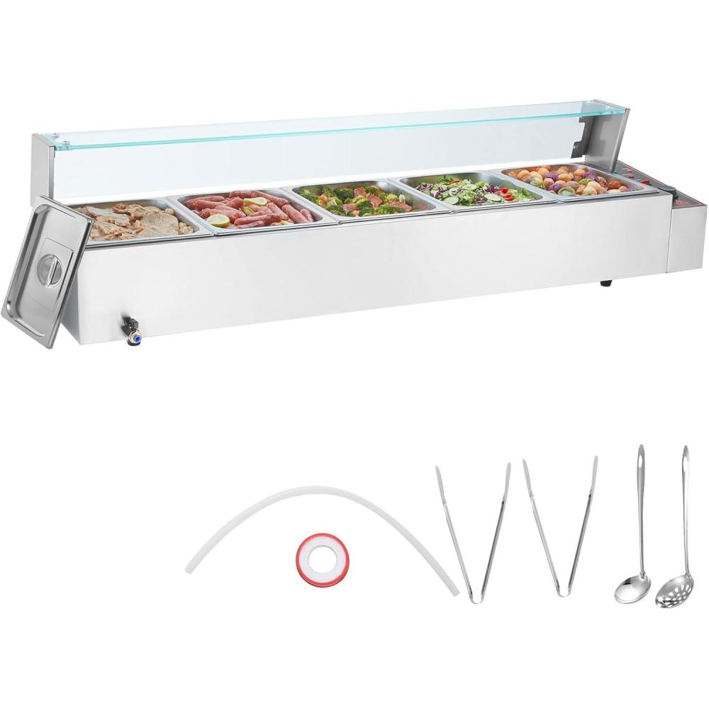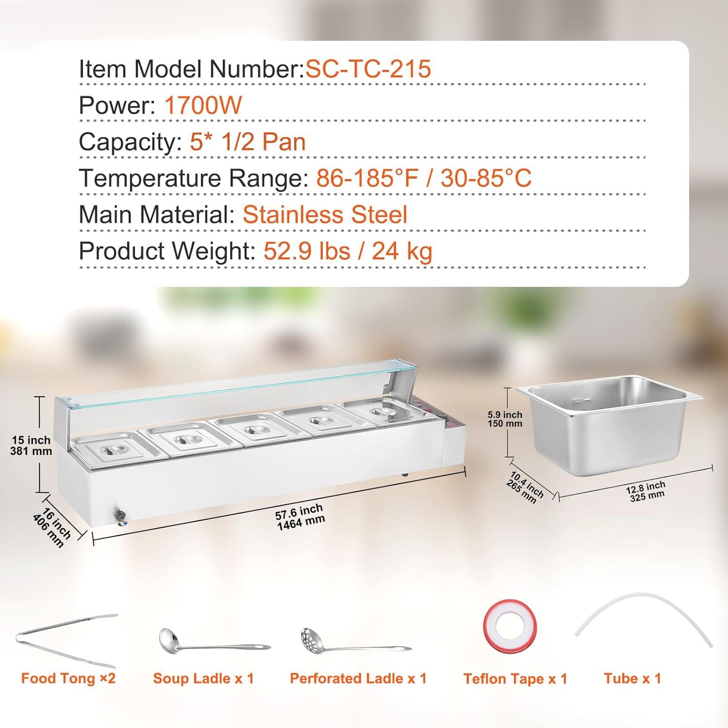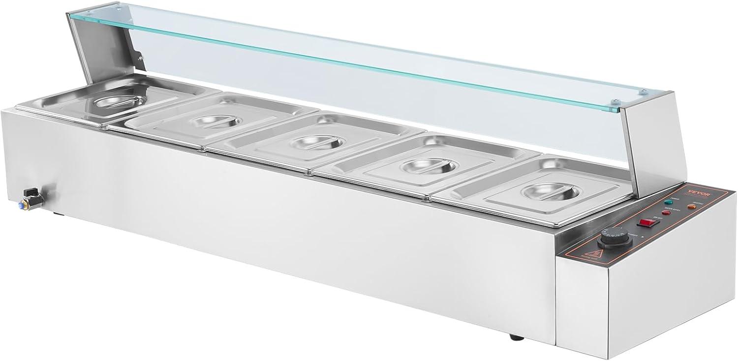 VEVOR 3-Pan Commercial Food Warmer, 3 x 8QT Electric Steam Table with Glass Cover, 1500W Countertop Stainless Steel Buffet Bain Marie 86-185°F Temp Control for Catering, Restaurants, Silver(5*1/2 Pan 60QT)