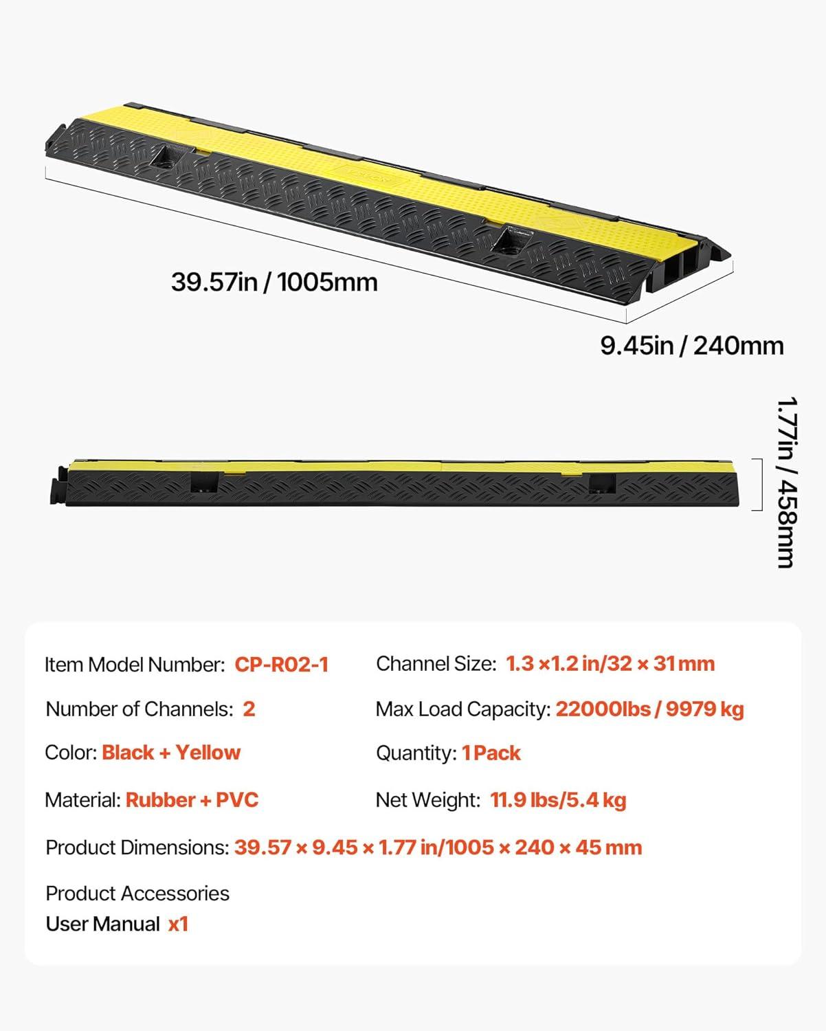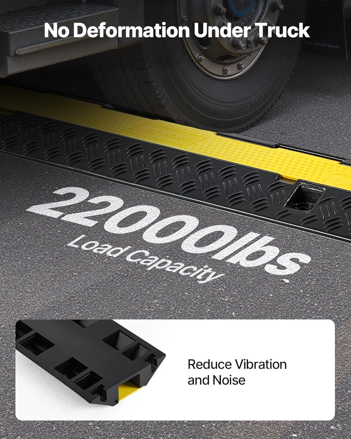 Superb Quality Rubber Material: Constructed from industrial-grade rubber! Our cable ramp is waterproof and low-temperature-resistant for long-lasting usage with an outstanding load capacity of 12,000 lbs/axle. The PVC top cover is wear-resistant and durable. Operating Temperature: Above -40℉. Get ready for materials and quality that do what they say!