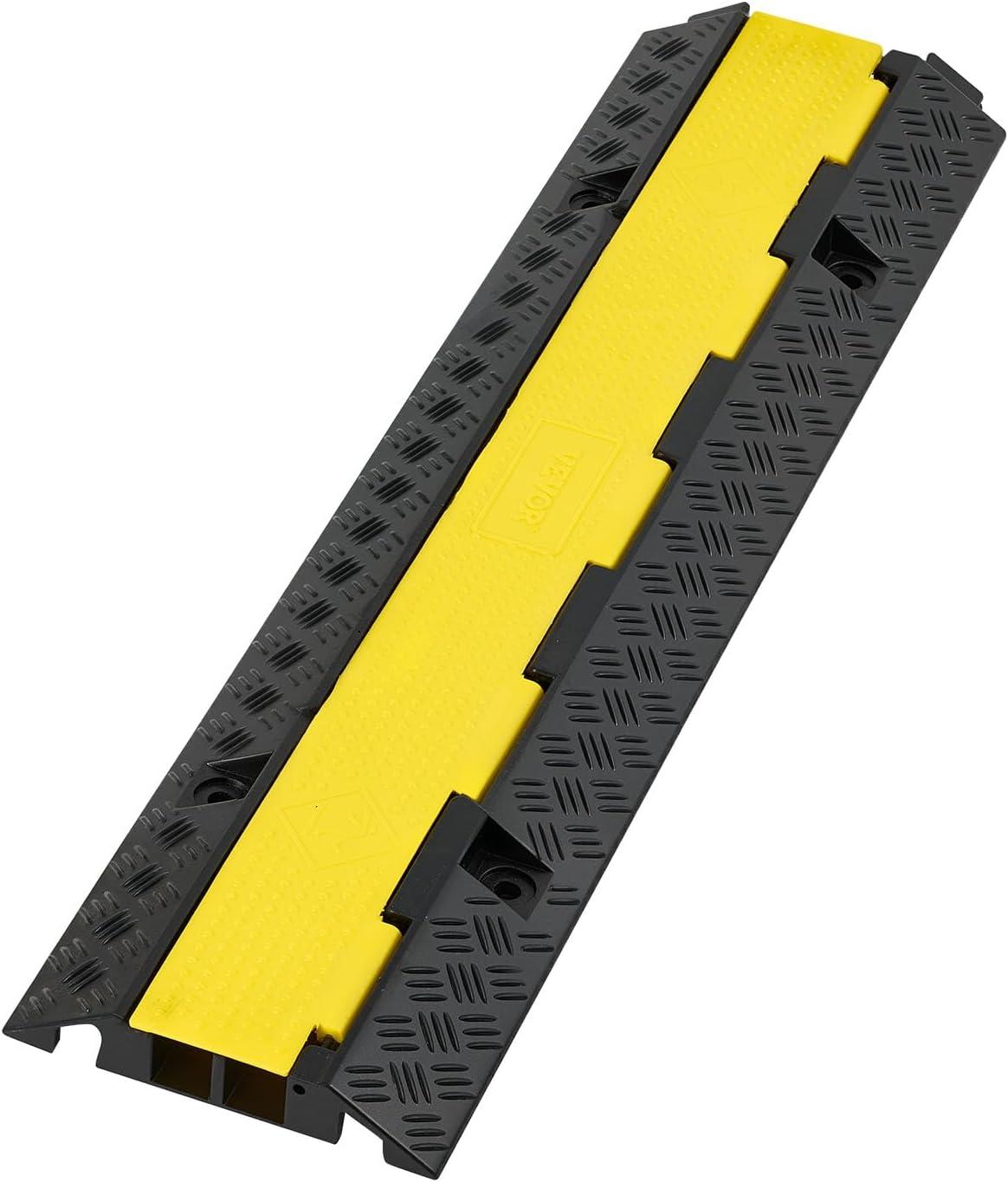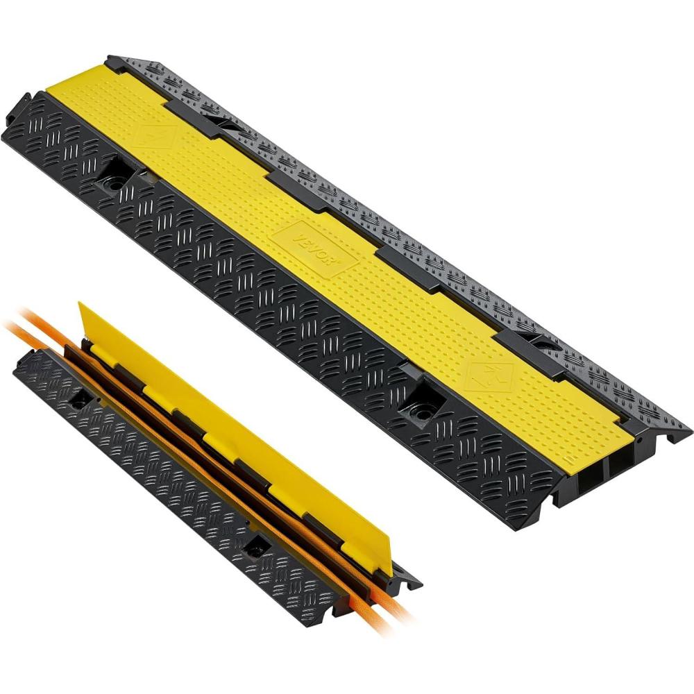 VEVOR 3 PCs 2 Channel Rubber Cable Protector Ramp, 12000 lbs/axle Capacity Heavy Duty Hose Wire Cover Ramp Driveway, Traffic Speed Bump w/Flip-Open Top Cover, for Indoor&Outdoor(2 Channel-1PC)