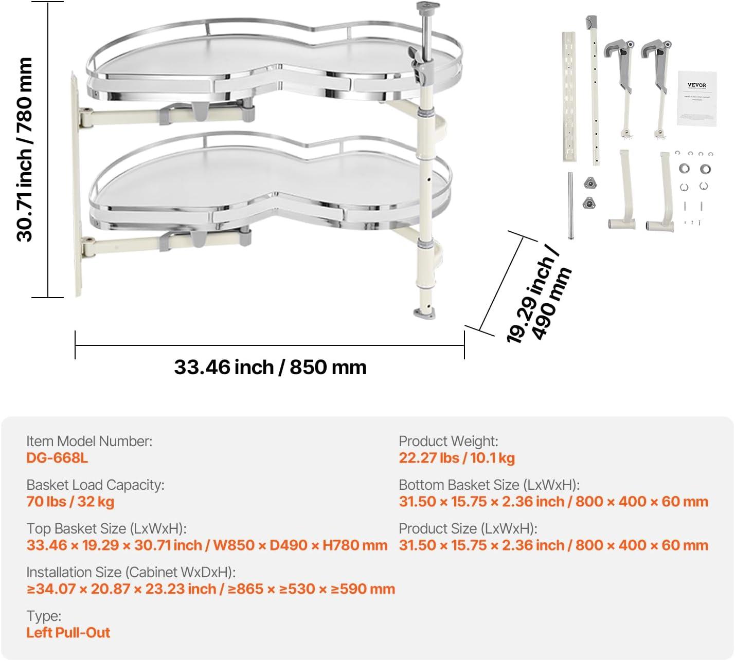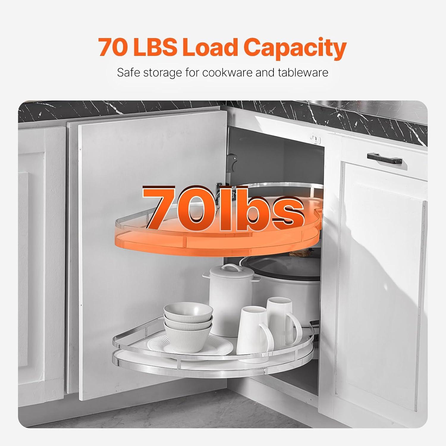 Sturdy Construction: Made with a carbon steel frame and chrome plating, the kitchen cabinet organizer exceeds a level 8 rust resistance rating, ensuring high durability and rust prevention. Each layer can support up to 22 lbs/10 kg, with a total weight capacity of 132 lbs/60 kg, making it suitable for heavy items.