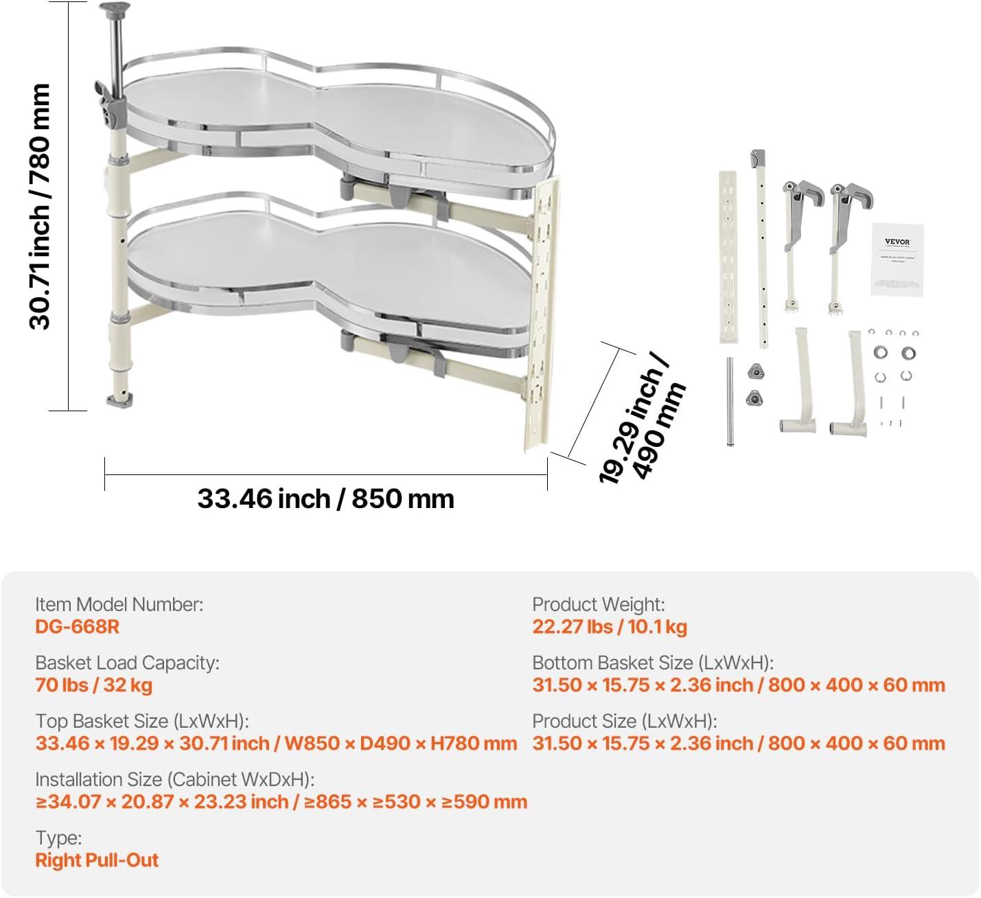 Compatible with Left or Right Opening Doors: A standout feature of this storage organizer rack is its support for installation in both left-opening and right-opening blind corner cabinets. Simply adjust the direction of the bottom bracket for a perfect fit with either door type, flexibly adapting to different kitchen layouts.