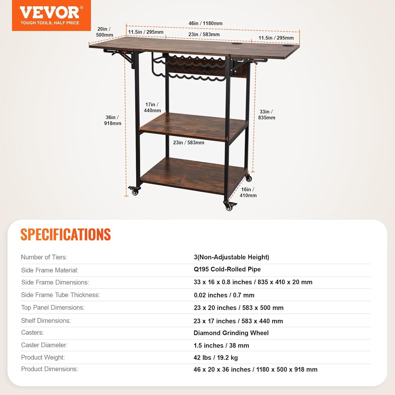 VEVOR 3 Tier Movable Heat Press Table, Foldable Heat Transfer Machine Stand with Vinyl Roll Holder, Heavy Duty Rolling Metal Workbench for DIY Sublimation Transfer Machine and Printer(3 Tier - Brown)
